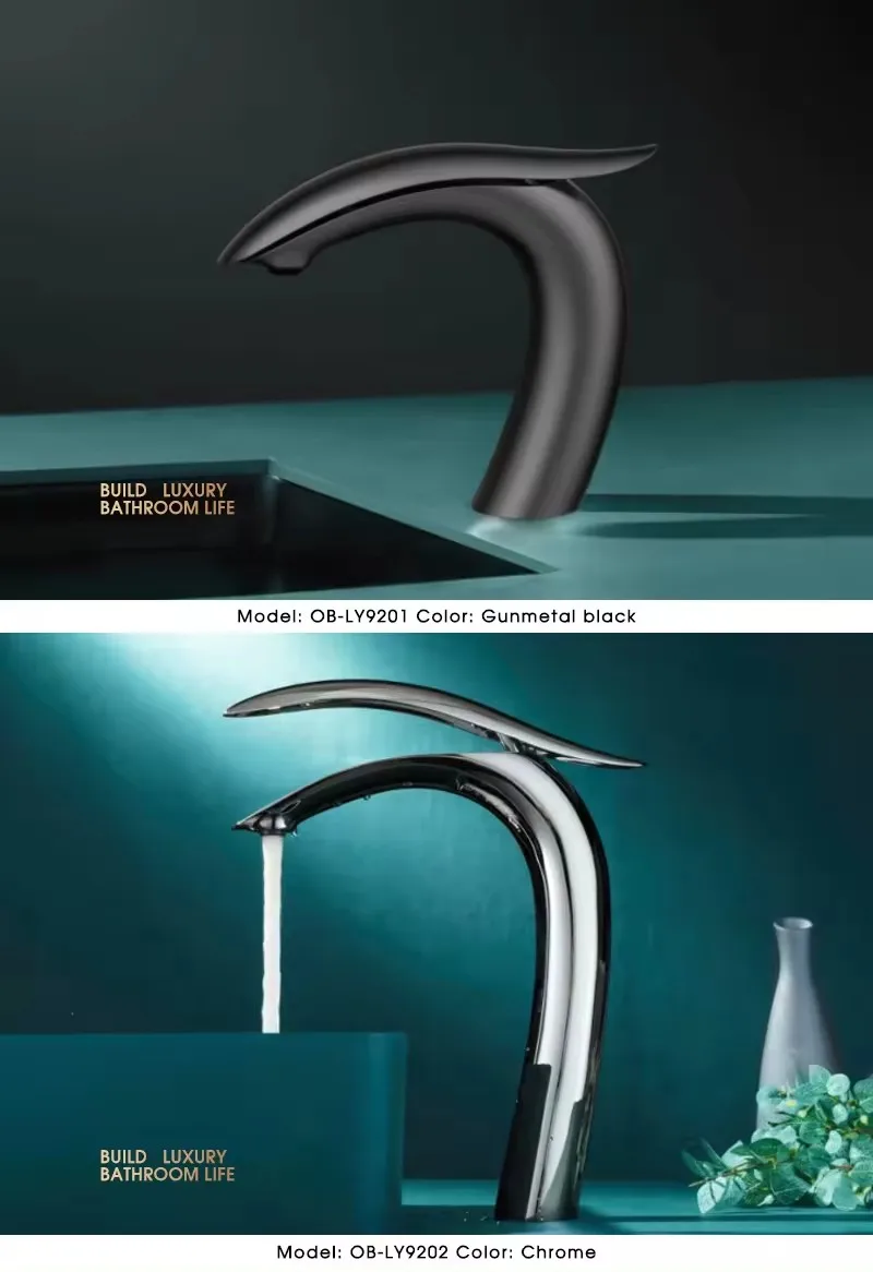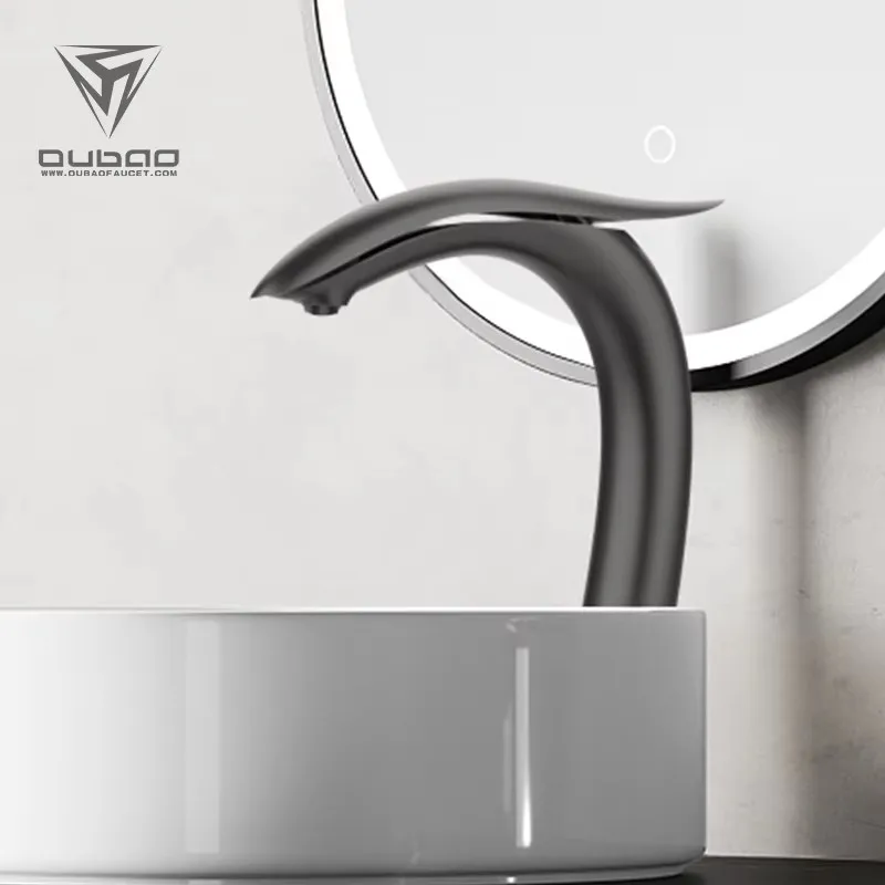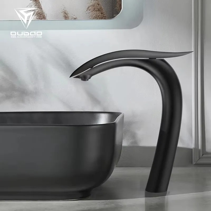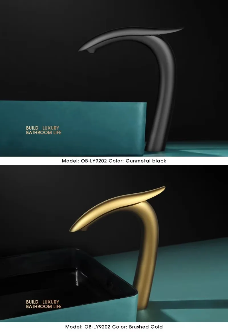 Robinet de lavabo de salle de bain en laiton de haute qualité lavabo robinet mélangeur d’eau chaud et froid répandu robinet de Lavabo monté sur le pont, pistolet noir