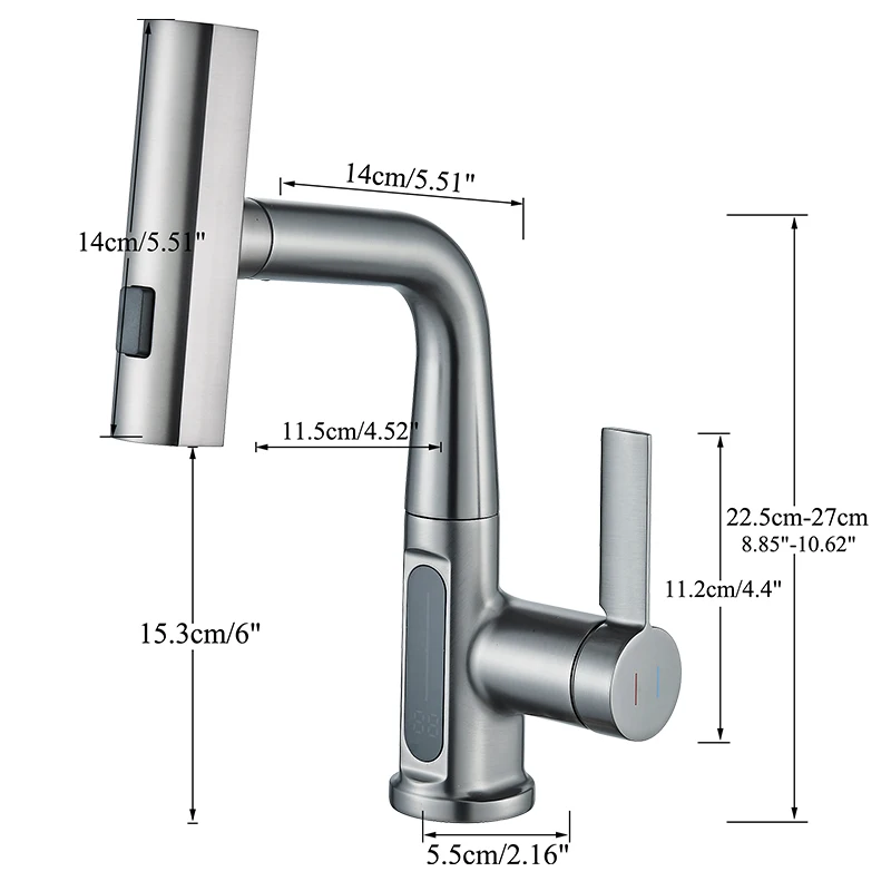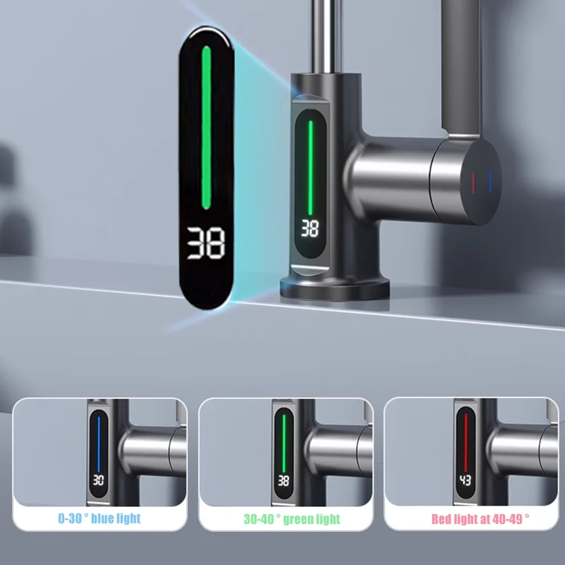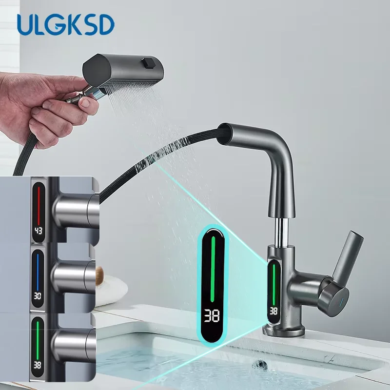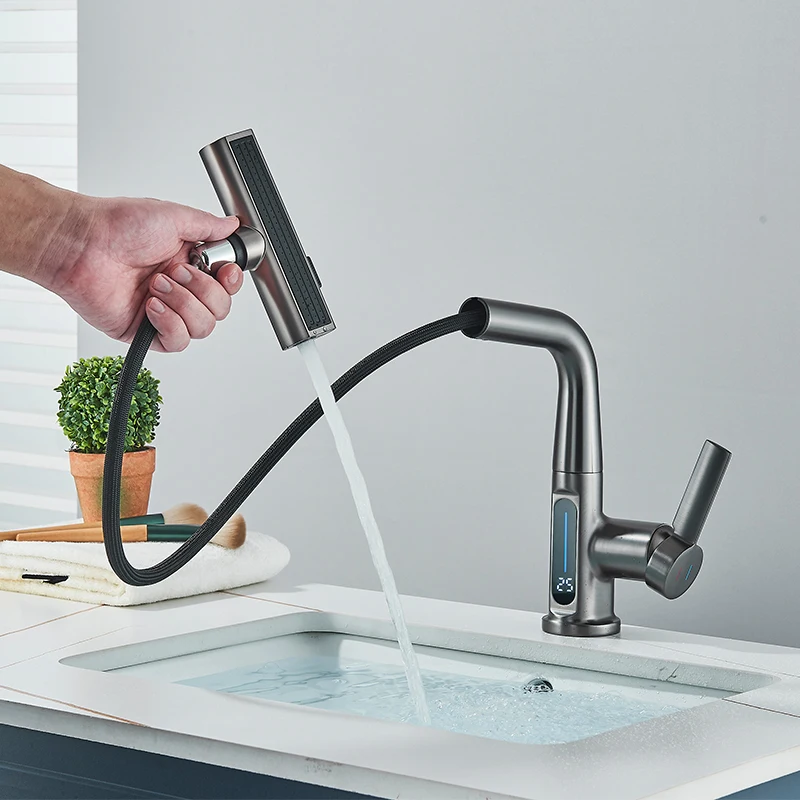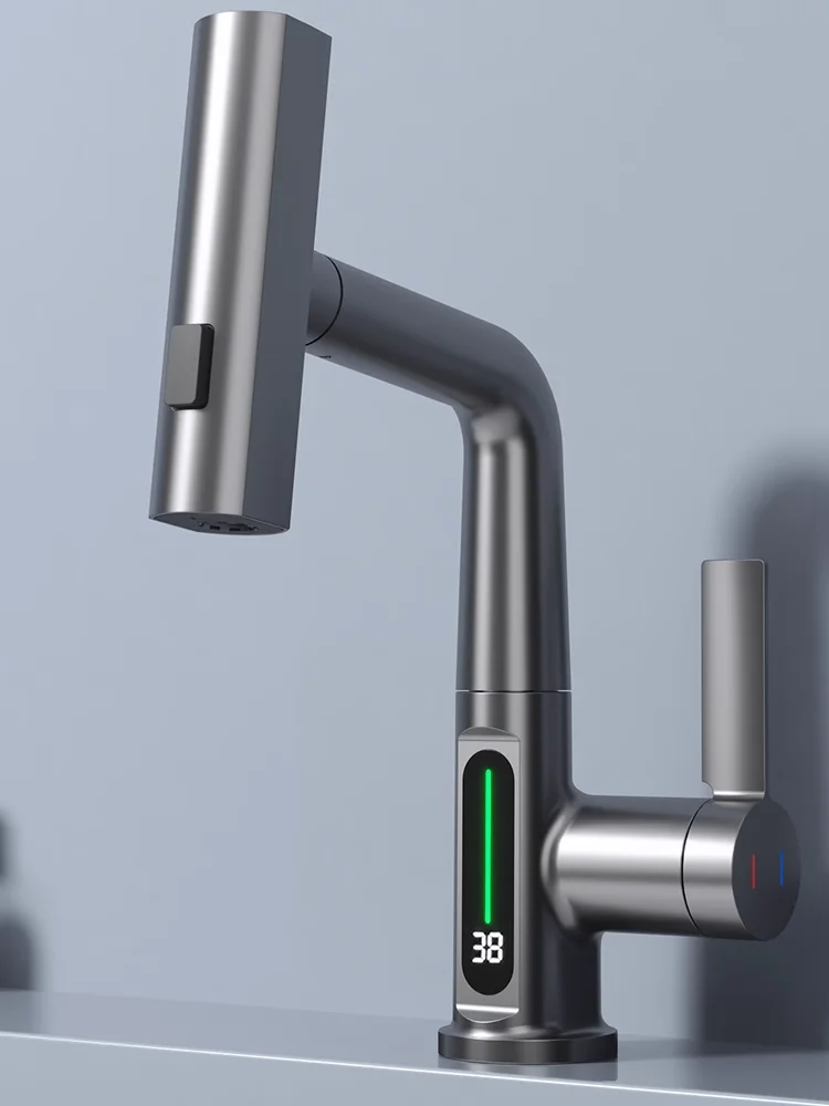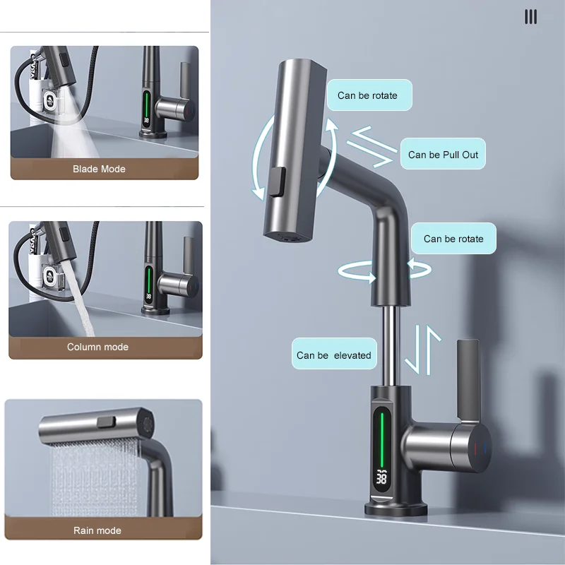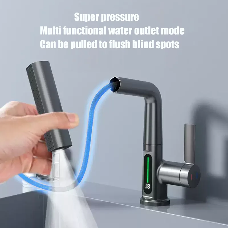 Robinet de lavabo de salle de bain LCD Robinet de lavabo à affichage numérique Robinet de salle de bain multifonctionnel Robinet mitigeur monté sur le pont Grue