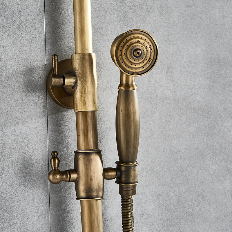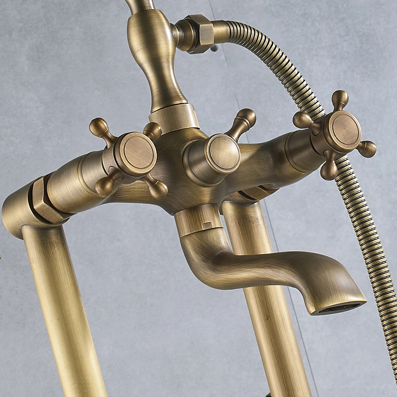 Robinet de baignoire de salle de bains sur pied en laiton Antique de luxe, ensemble de douche, Double poignée, bec pivotant, tuyau de douche de 150cm, mélangeur chaud et froid