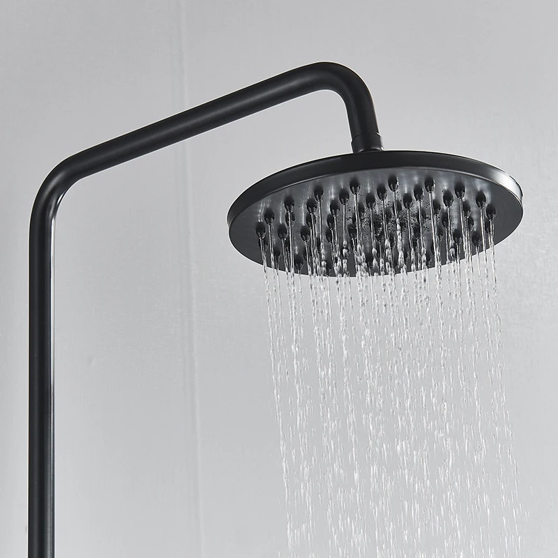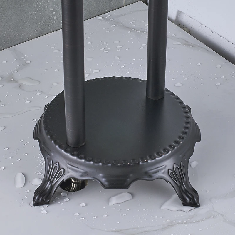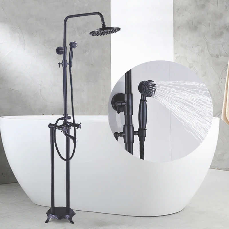 Robinet de baignoire de salle de bains sur pied noir de luxe, ensemble de douche, bec pivotant à double poignée, tuyau de douche de salle de bains mélangeur chaud et froidRobinet de baignoire de salle de bains sur pied noir de luxe, ensemble de douche, bec pivotant à double poignée, tuyau de douche de salle de bains mélangeur chaud et froid