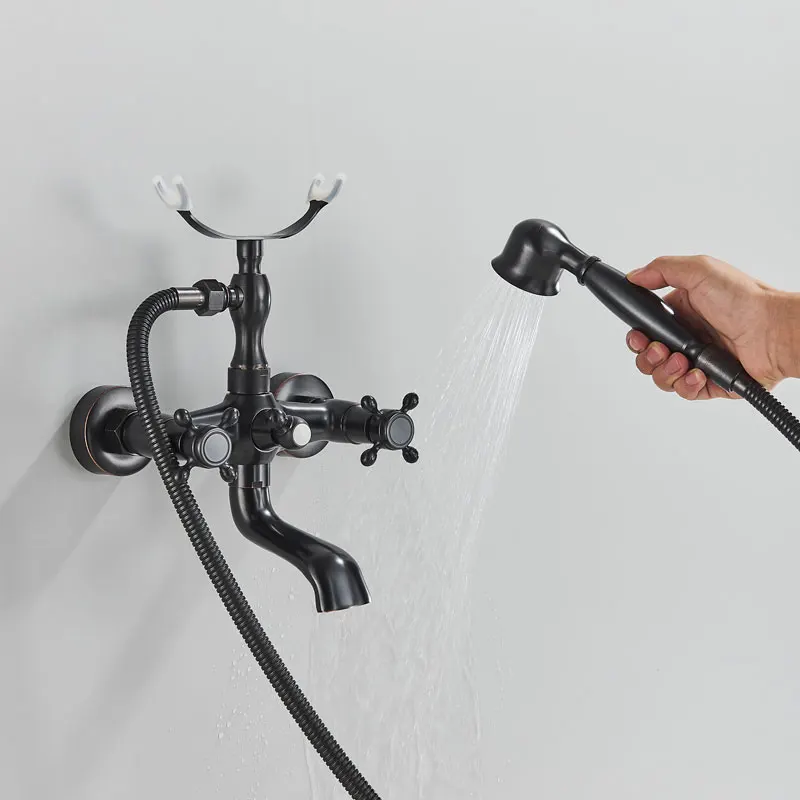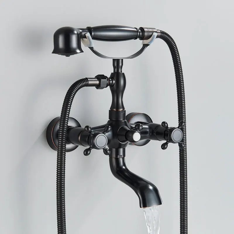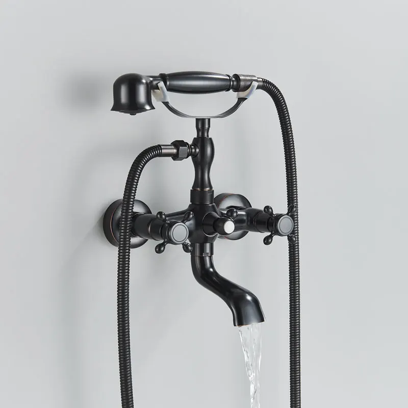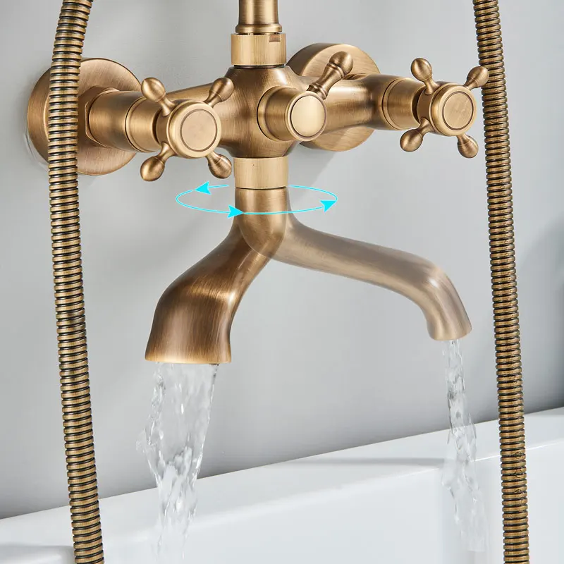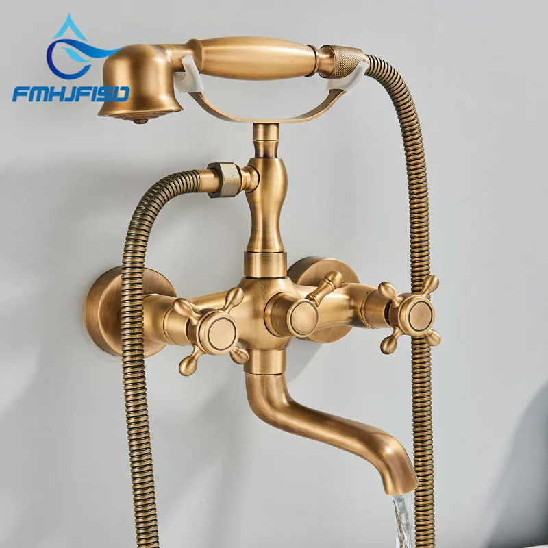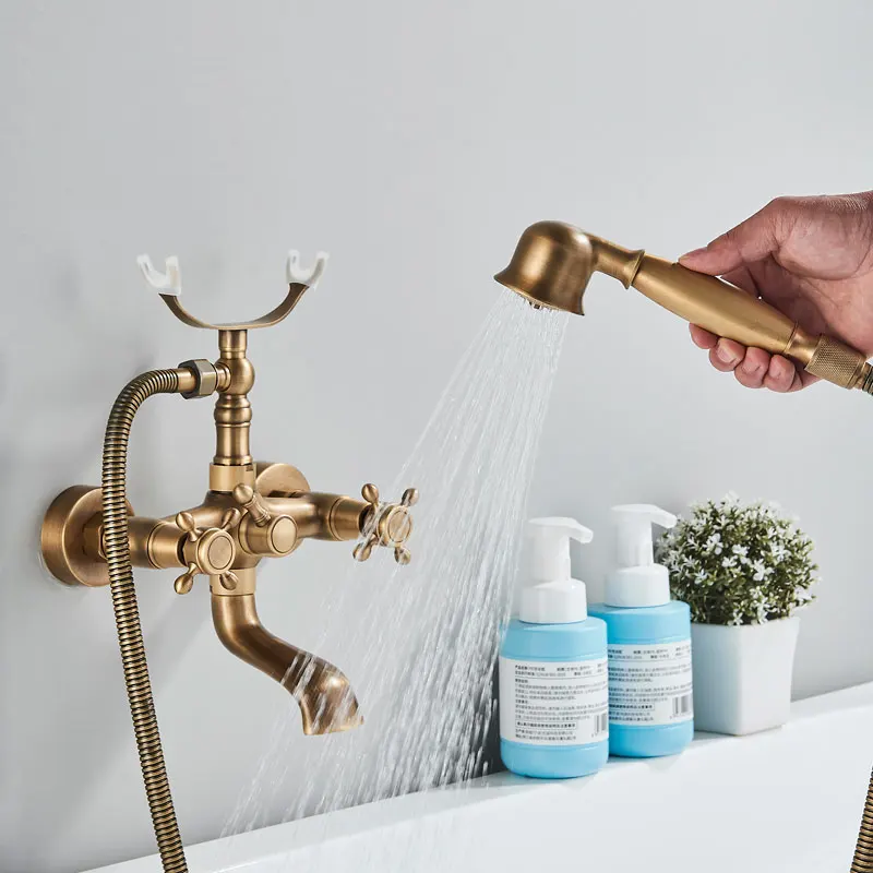 Cascade en laiton Antique, 2 poignées, robinet de baignoire généralisé, robinet de bain romain pour douche, robinets d’eau froide et chaude