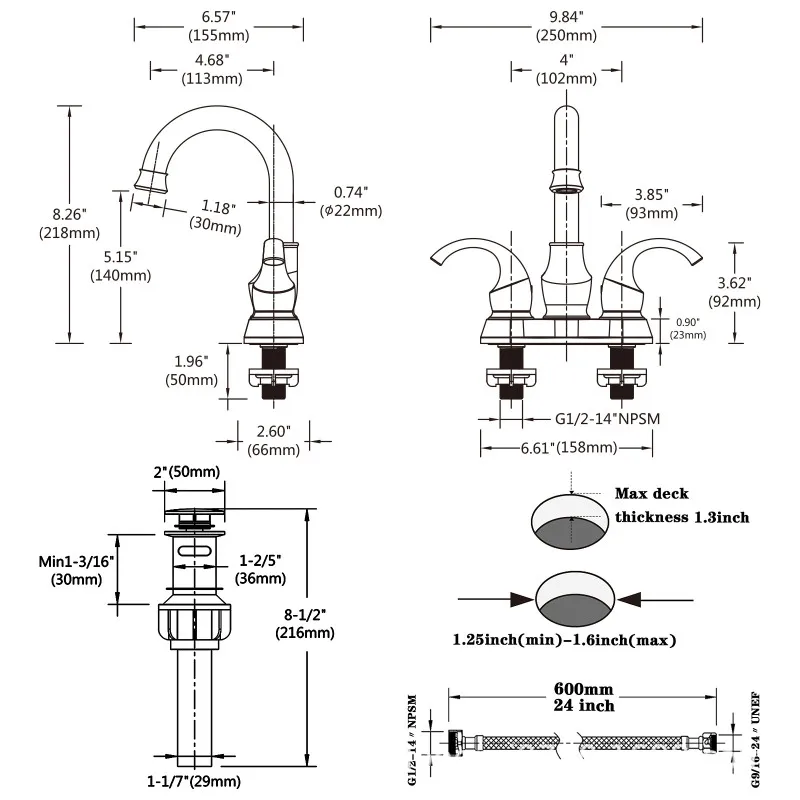 - Support de robinet: 4″ Centerset