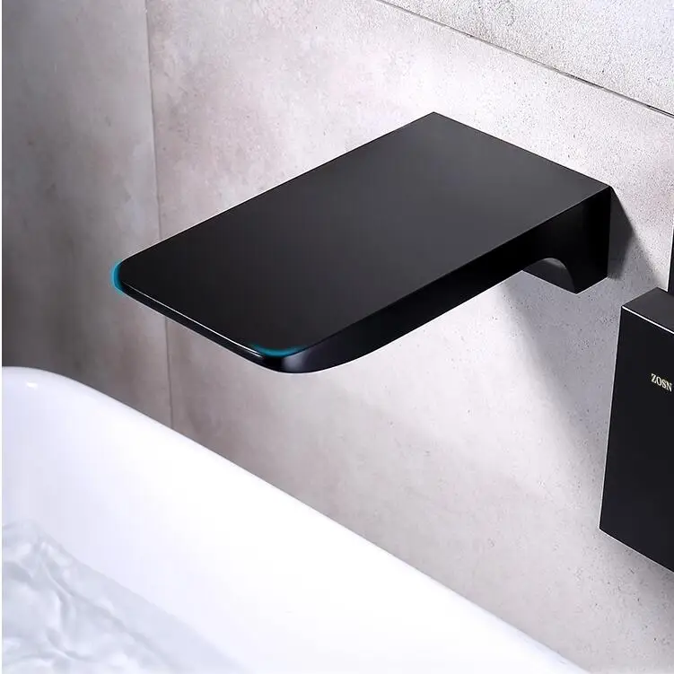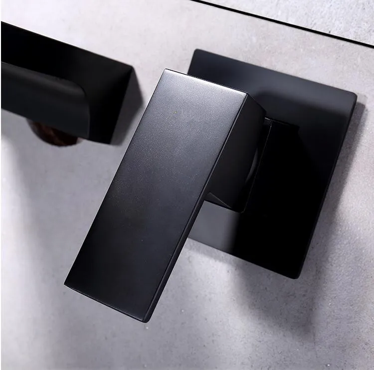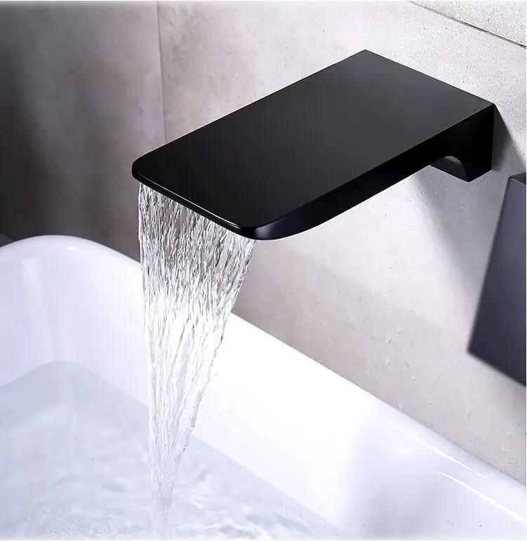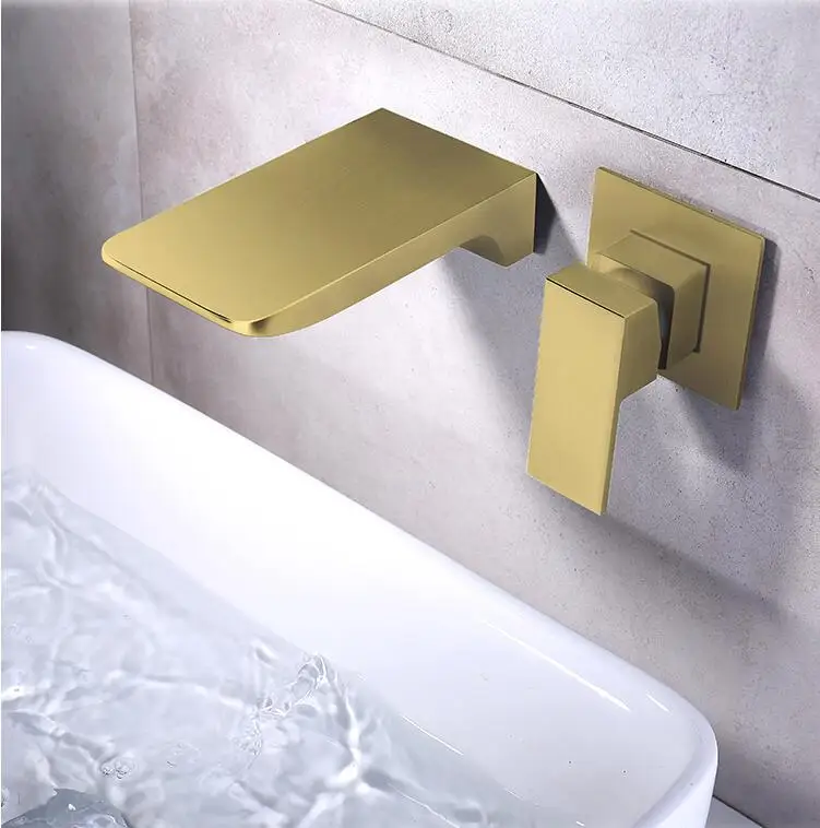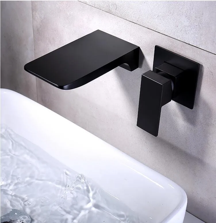 Robinet de lavabo en or rose monté en or brossé Robinet d’évier de salle de bain Robinet cascade mural Mitigeur de lavabo Combinaison Blanoir