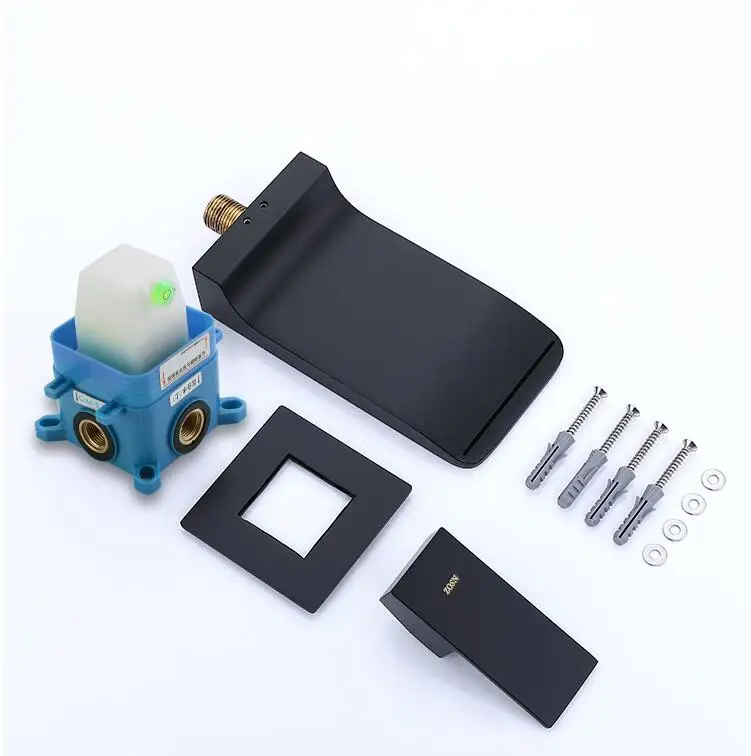 Robinet de lavabo en or rose monté en or brossé Robinet d’évier de salle de bain Robinet cascade mural Mitigeur de lavabo Combinaison Blanoir