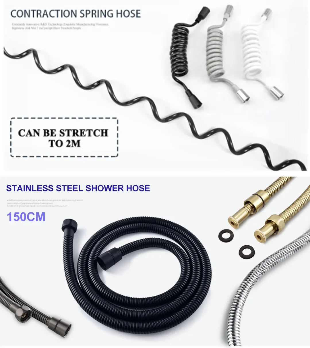 Tuyau de douche : Tuyau en acier inoxydable 1,5 M/tuyau PVC 2M