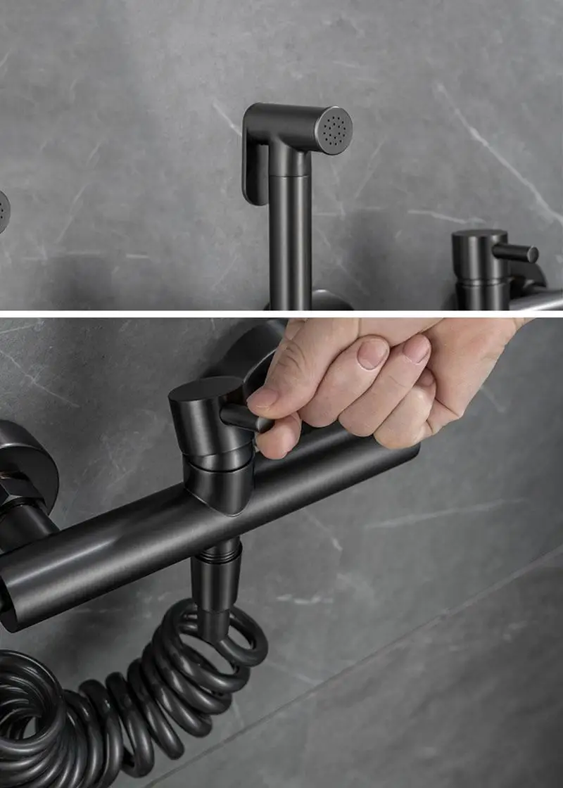 Robinet de Bidet mural, pulvérisateur de douche, mélangeur d’eau froide et chaude pour salle de bains, accessoires de salle de bains en laiton plaqué Bidet