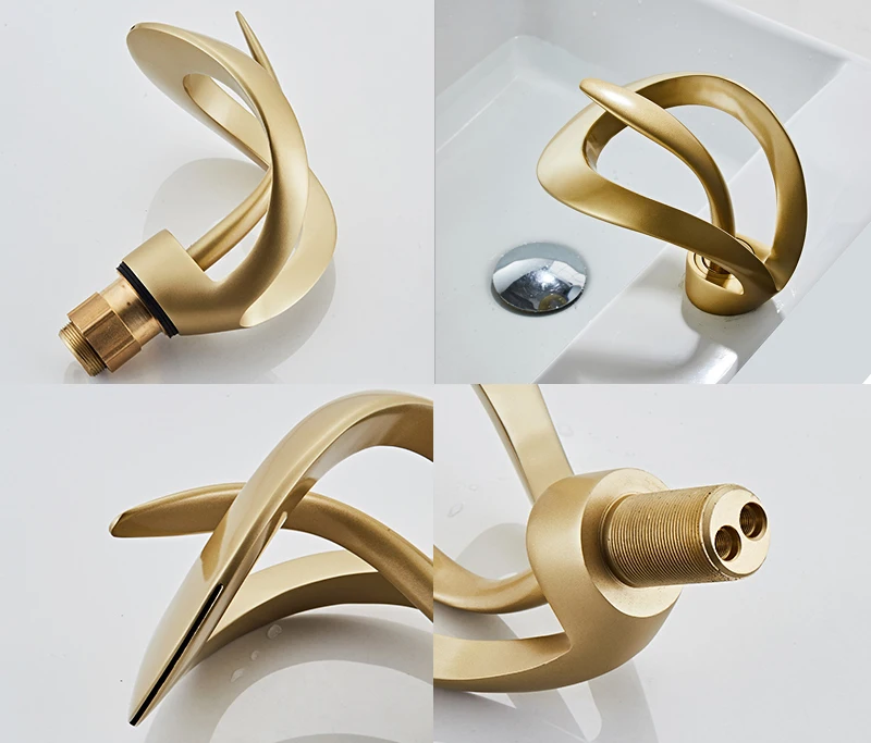 Robinet mitigeur de lavabo Robinet cascade Robinets d’évier de salle de bain Robinet chaud et froid en laiton doré Mitigeur Trou Robinet de lavabo Torneira