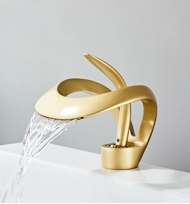 Basin Mixer Faucet Waterfall Tap Bathroom Sink Faucets Gold Brass Hot and Cold Faucet Single Handle Hole Wash Basin Tap Torneira