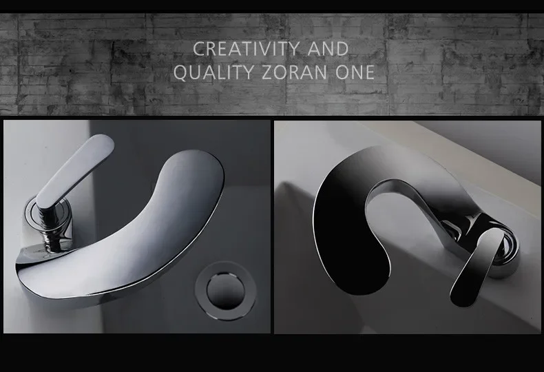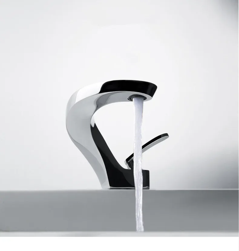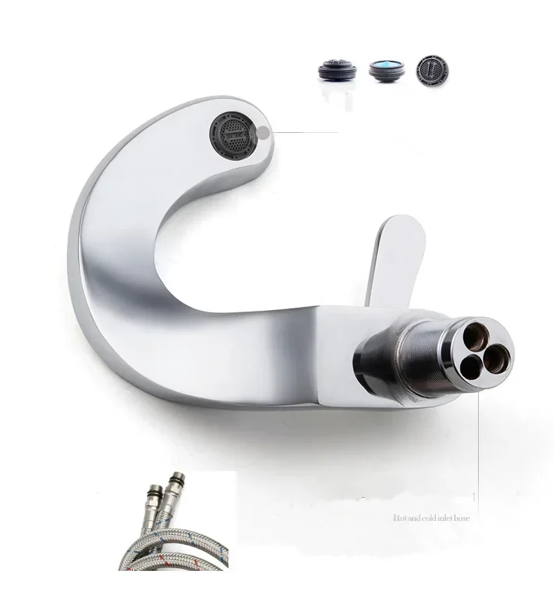 Robinet de lavabo de salle de bain Robinet d’évier cascade froide et chaude Robinets mitigeurs contemporains en laiton chromé pour salle de bain