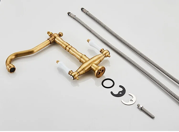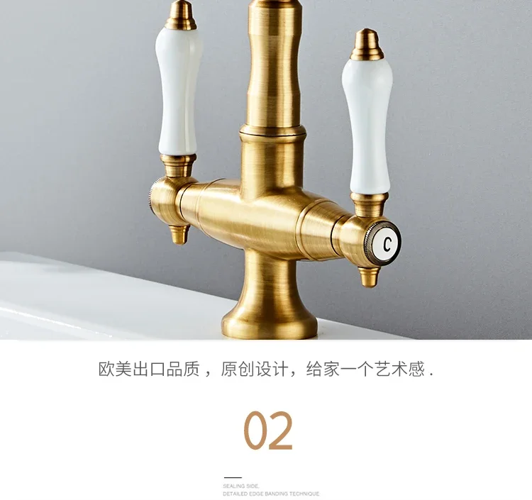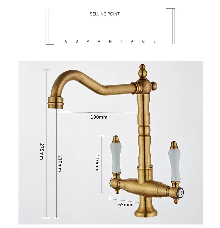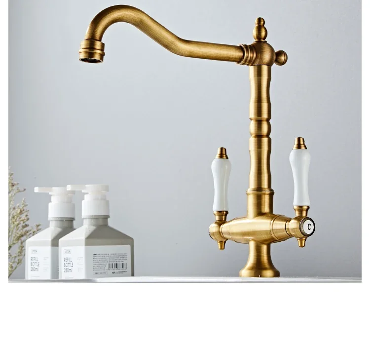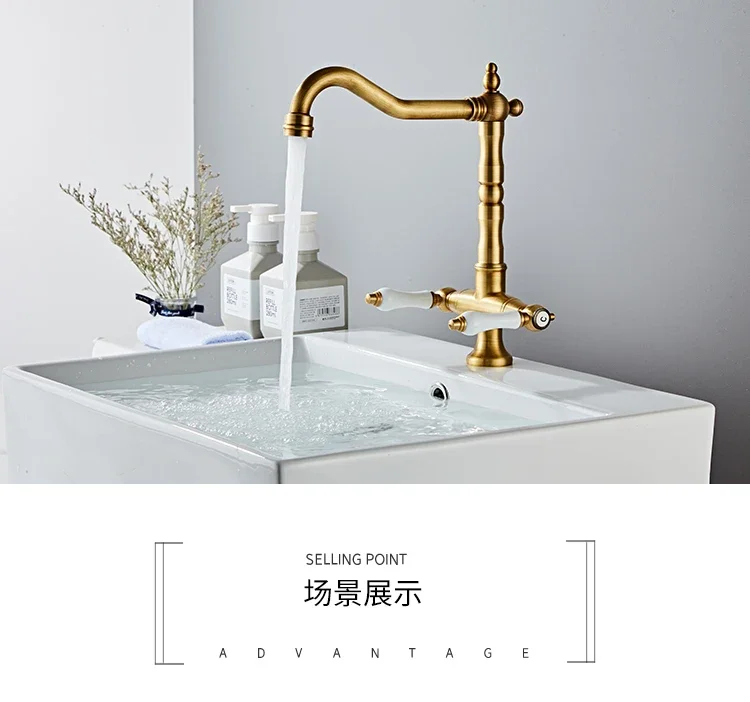 Nom: robinet de cuisine à double poignée, robinet rétro en laiton Antique, Rotation à 360 degrés, robinets d’évier de cuisine, mélangeur d’évier de salle de bains monté sur le pont