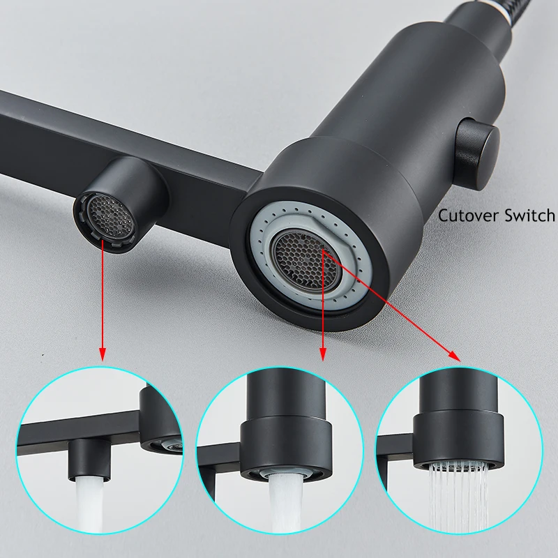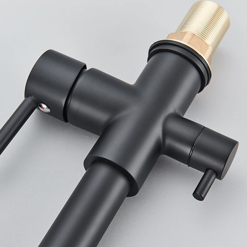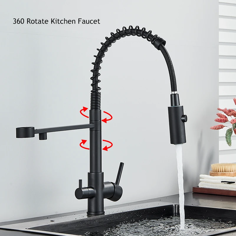 Robinet de cuisine à eau potable, robinet d’évier de cuisine noir, robinet de cuisine en laiton avec filtre 360 °   Mélangeur d’évier rotatif double mode
