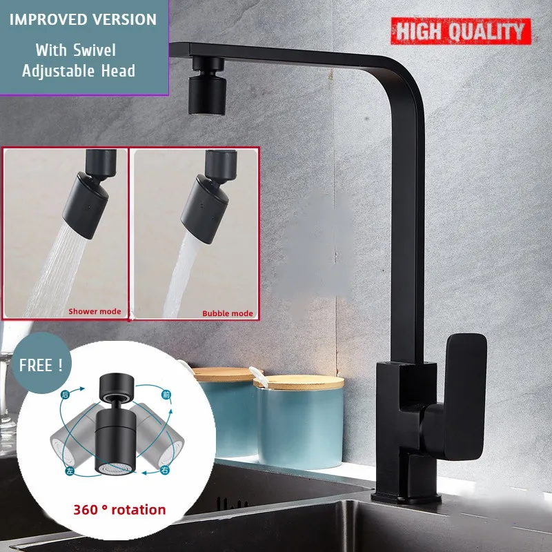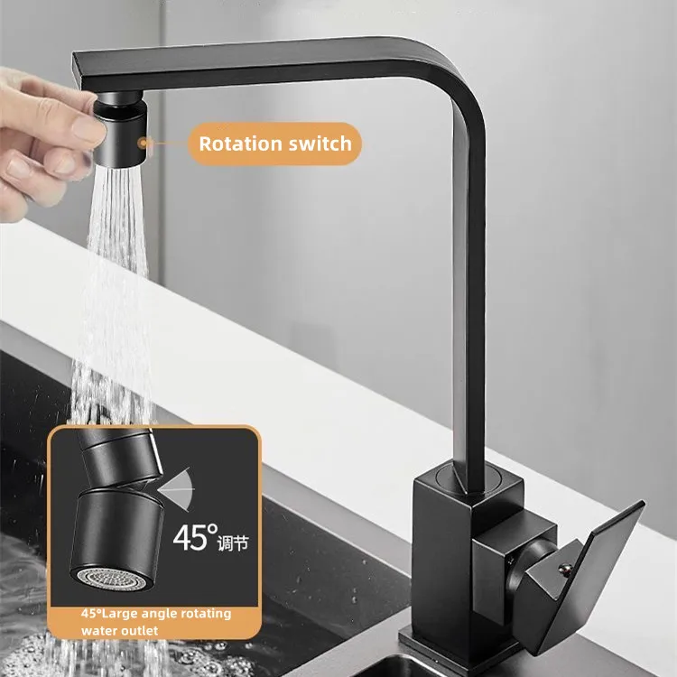 Nouveau Style noir cuisine robinet aérateur 360 degrés double Mode 2 flux étanche aux éclaboussures pressurisé cuisine robinet aérateur barboteur