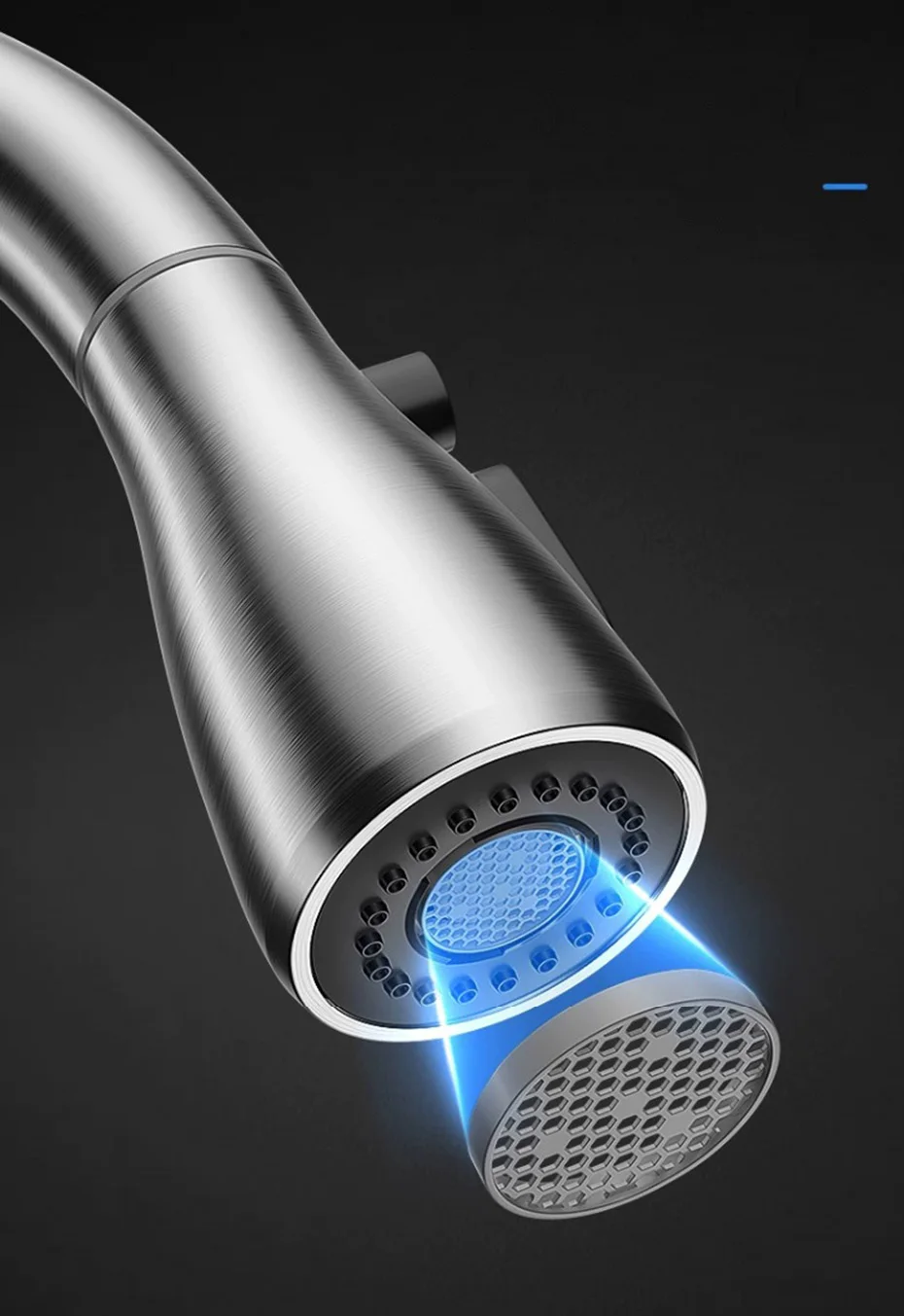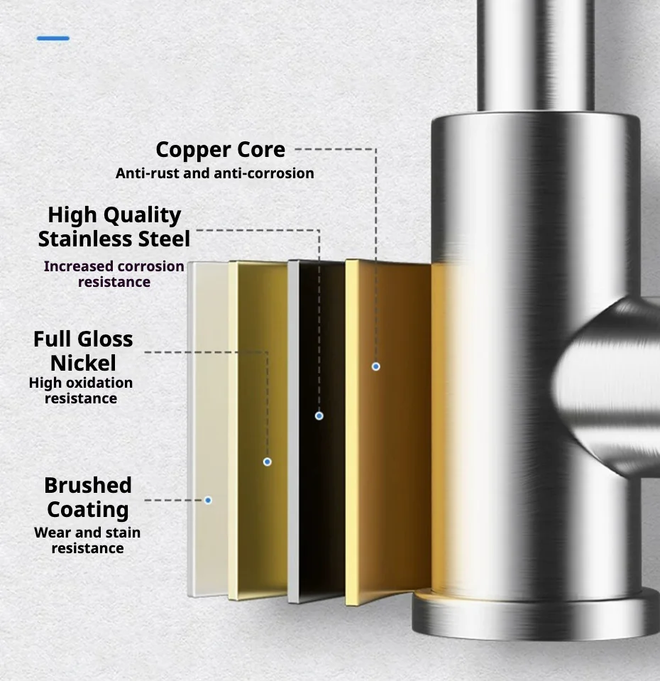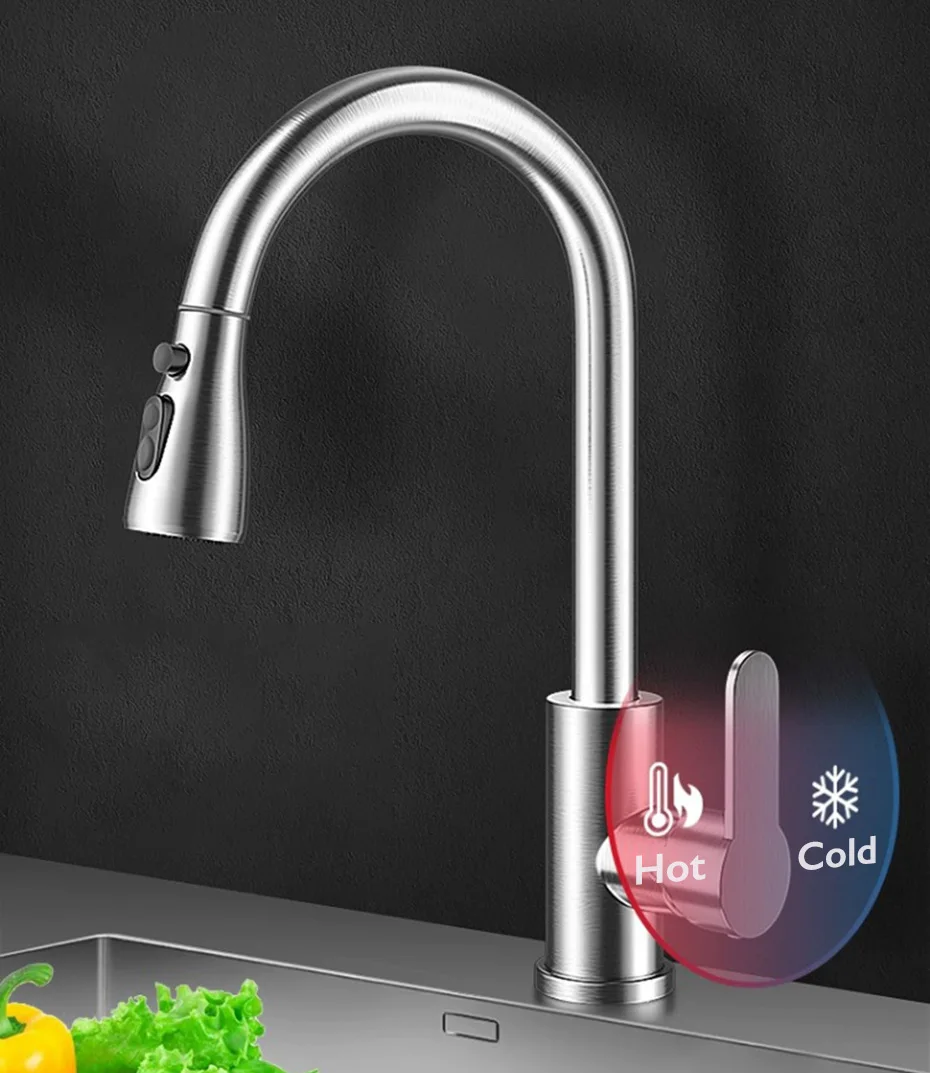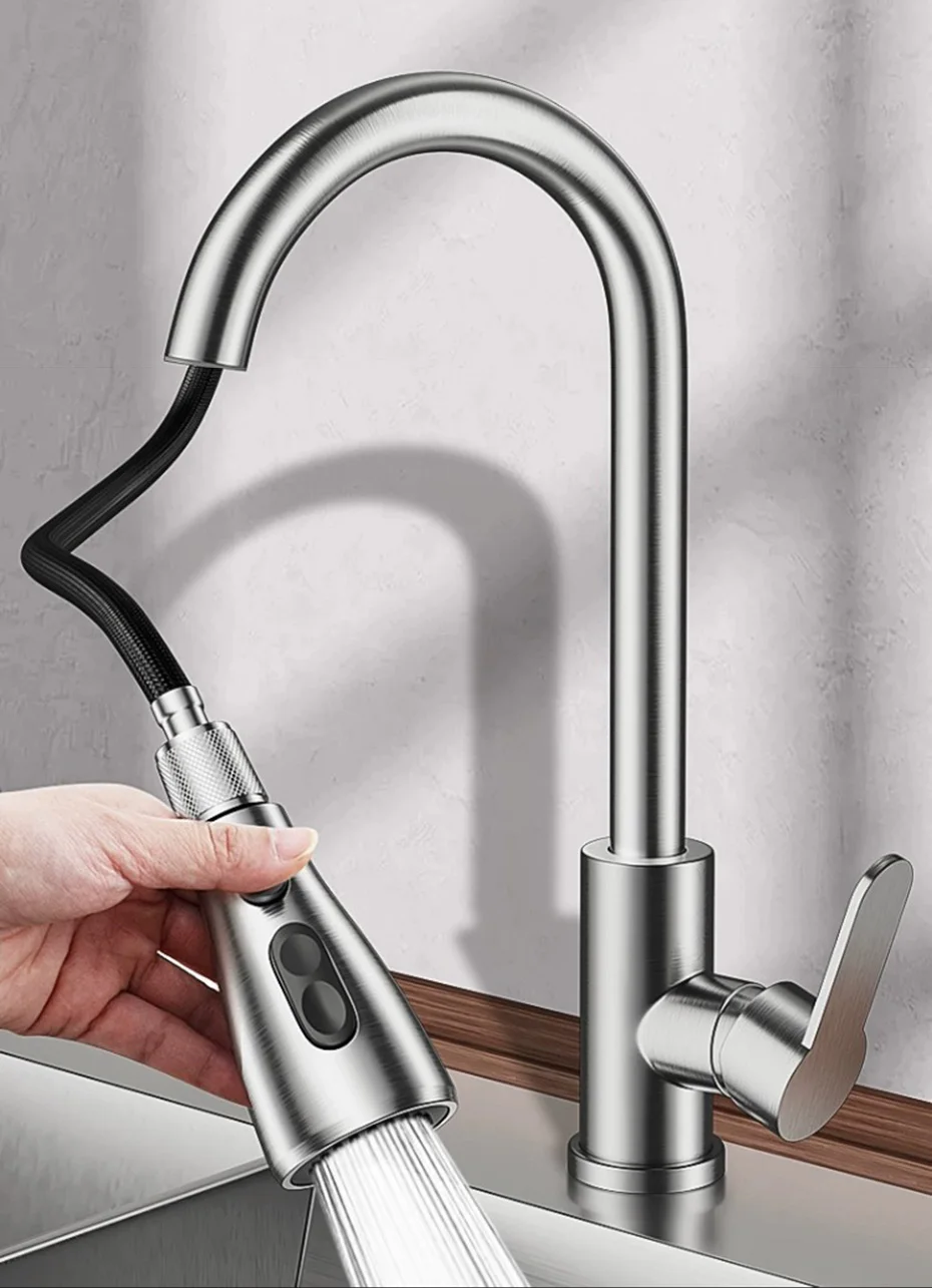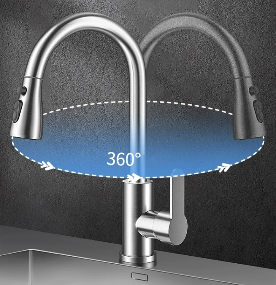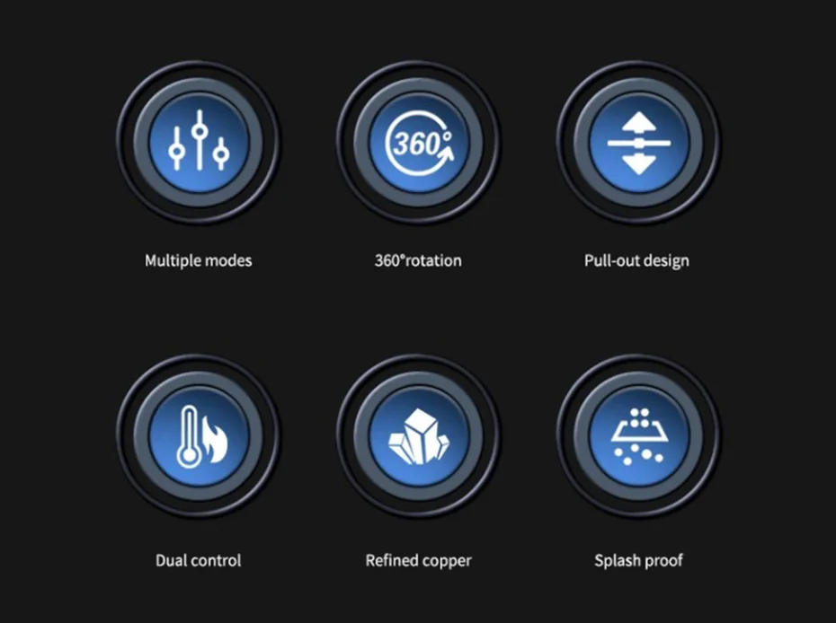 • Buse à double mode : le robinet dispose de deux modes de débit d’eau (mode eau fluo et mode eau pulvérisée), chaud et froid, ce qui le rend pratique pour divers besoins de cuisson.