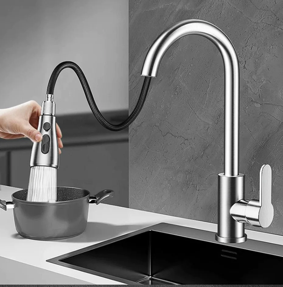 • Spray extractible : La fonction de pulvérisation extractible permet un nettoyage facile et efficace de la vaisselle et des ustensiles.