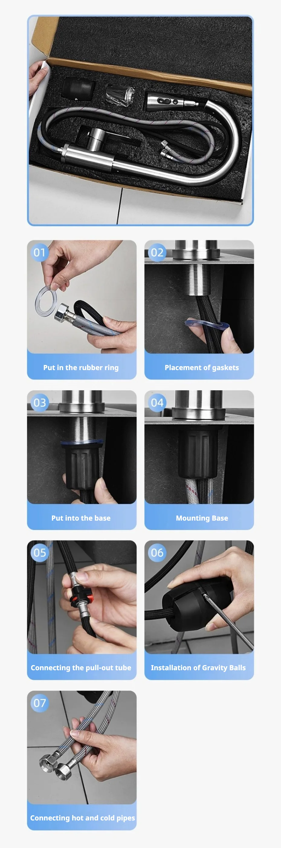 Robinet + une paire de tuyaux d’entrée d’eau froide et chaude + accessoires d’installation