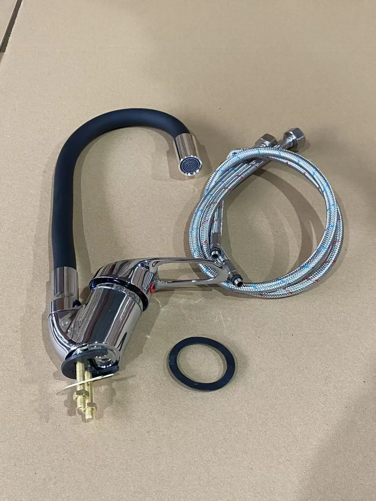 Robinet de cuisine avec tuyau flexible coloré - 360 ° Mélange pivotant, chaud et froid, pour lavabo de légumes monotrou |