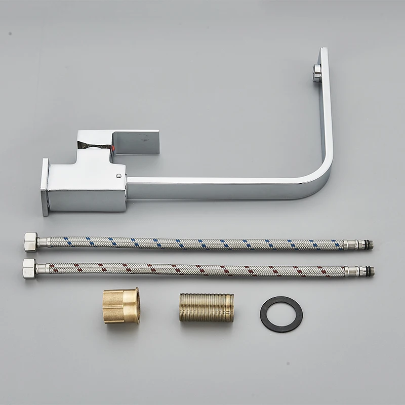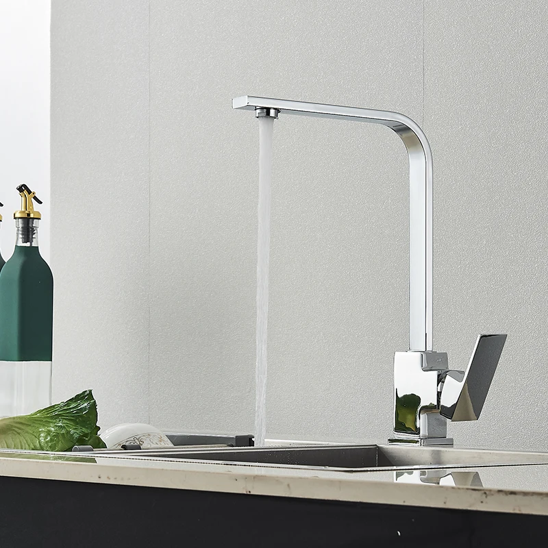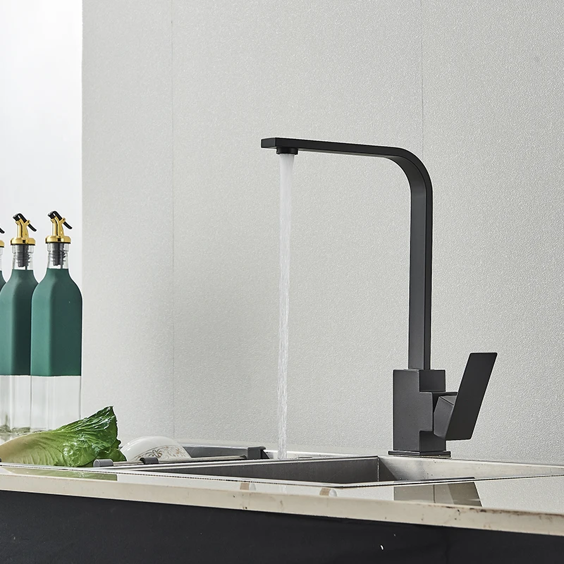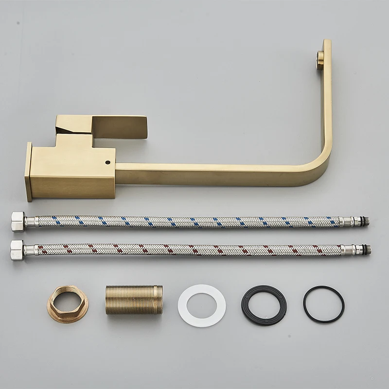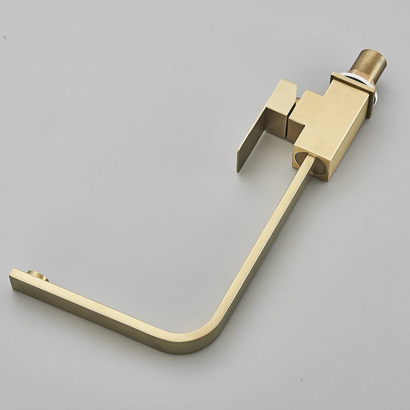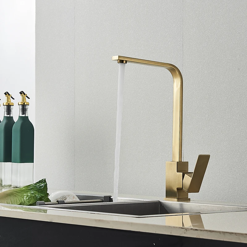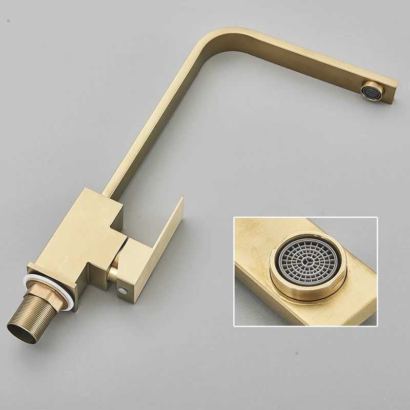 Robinet de cuisine carré doré à brosse, robinet d’évier de cuisine chaud et froid, mélangeur à Rotation à 360 degrés, grue d’eau montée sur le pont