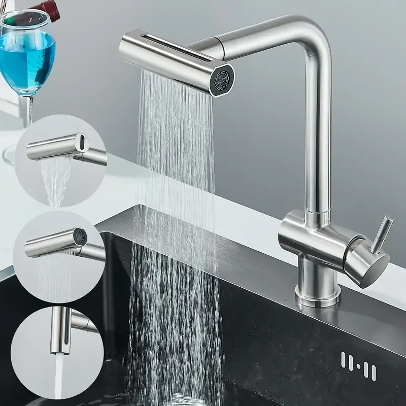 【Design polyvalent】 Le robinet de cuisine cascade est une tête de robinet de remplacement 4 en 1 qui offre un 720 ° rotation pour une couverture de pulvérisation maximale. Il présente une fonction pivotante, vous permettant de tourner la tête du robinet pour un facile lavage des légumes et des fruits.