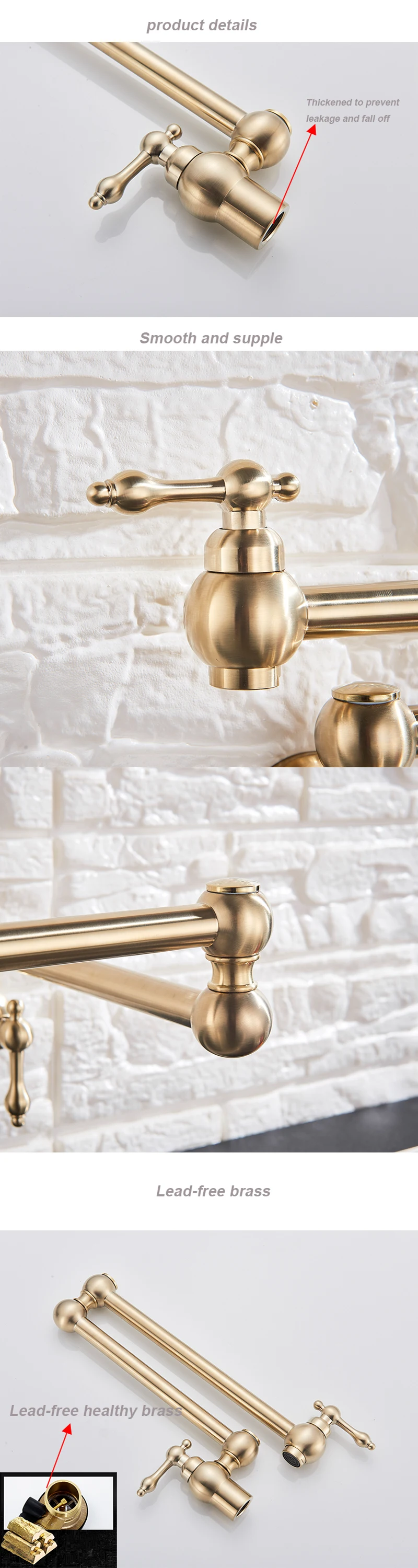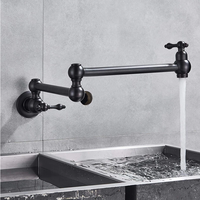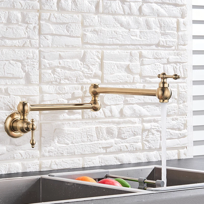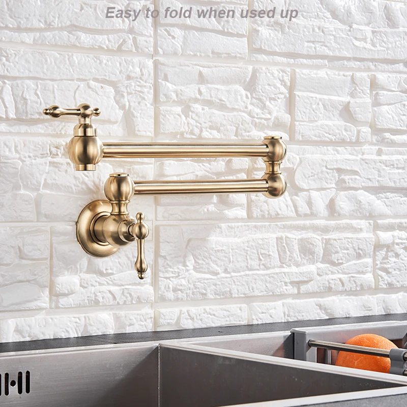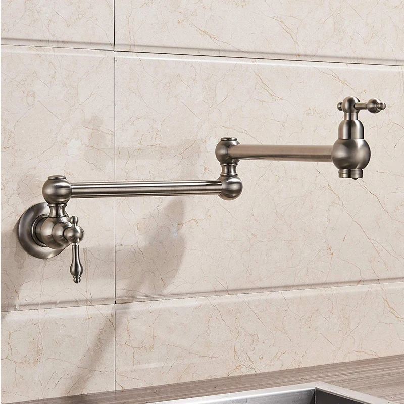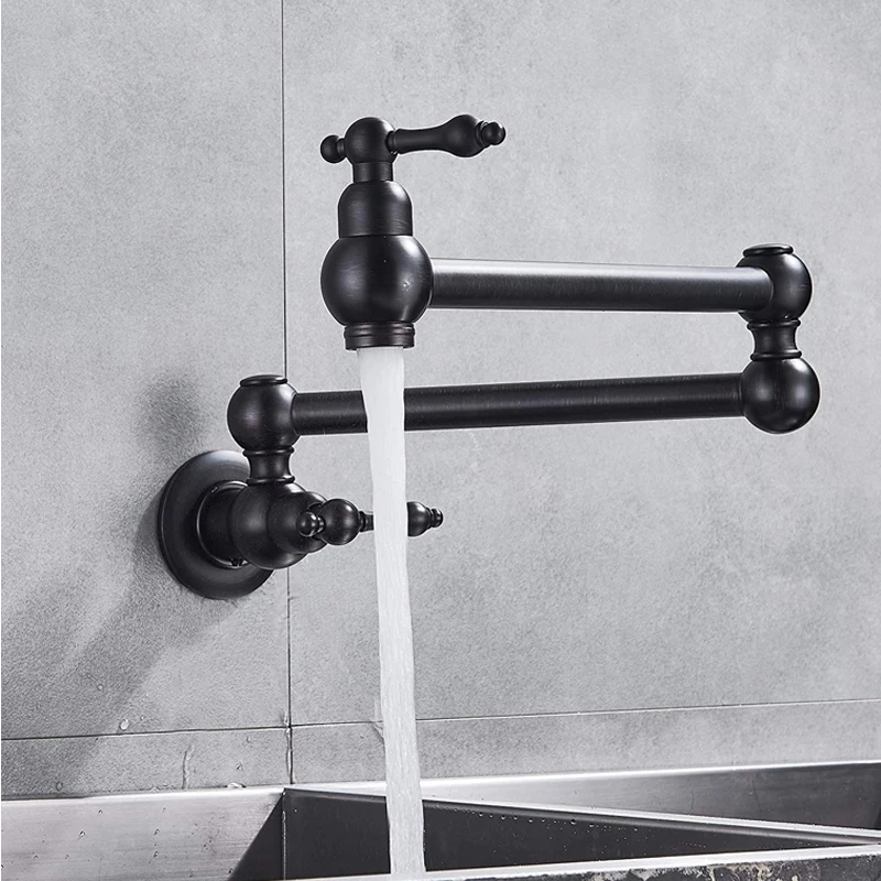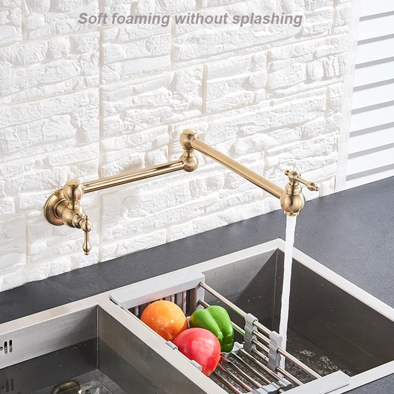 Robinet de remplissage de Pot en laiton doré brossé noir, nickel chromé, robinet de cuisine mural, robinet simple froid à trou unique, bec rotatif pliable