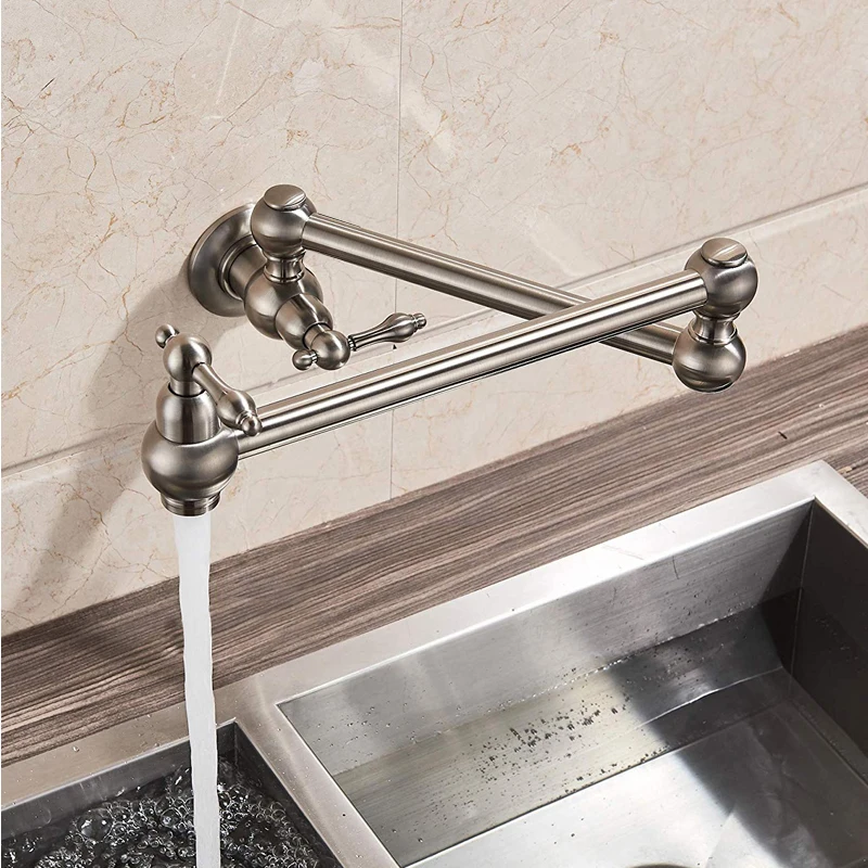 Robinet de remplissage de Pot en laiton doré brossé noir, Nickel chromé, robinet de cuisine mural, robinet monotrou froid, bec pliant rotatif