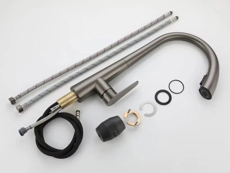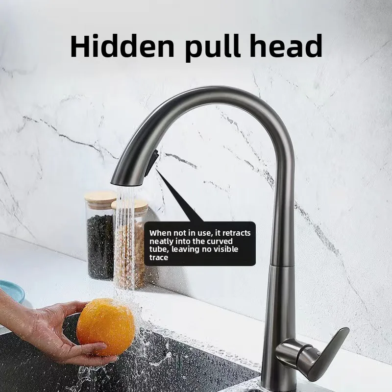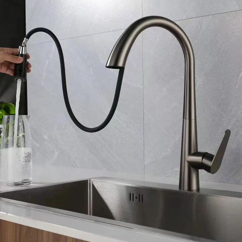 Robinet de lavabo robinet de cuisine chaud et froid en laiton évier pivotant à Double poignée évier de légumes avec pistolet de pulvérisation robinet extractible HN61353 |