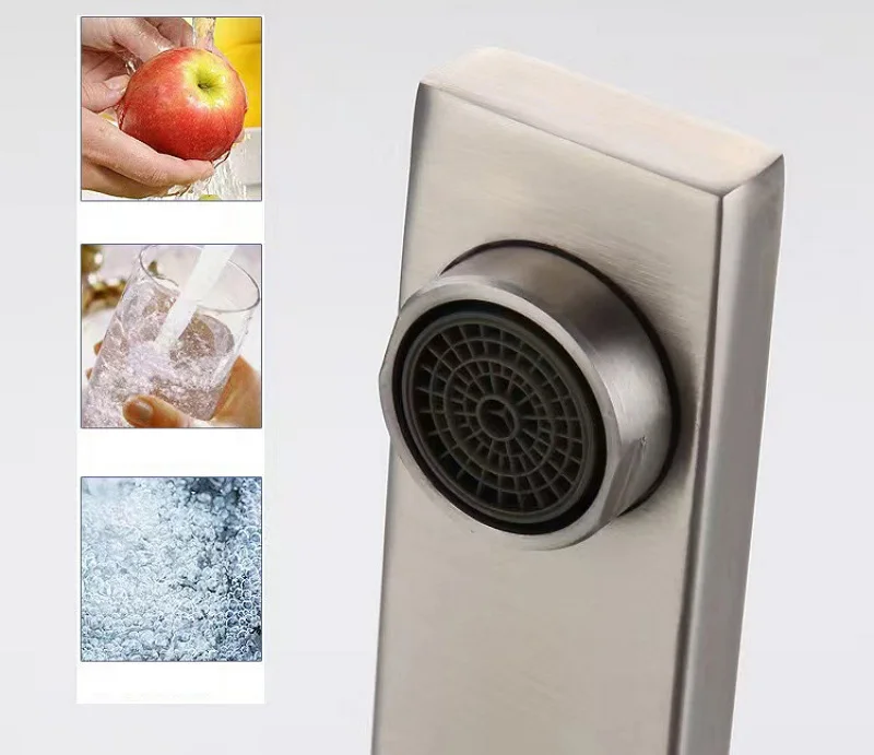 3. Qualité fiable: pas d’éclaboussures, débit d’eau stable, silencieux et sans bruit, conception simple et fraîche, adaptée à la plupart des éviers de cuisine