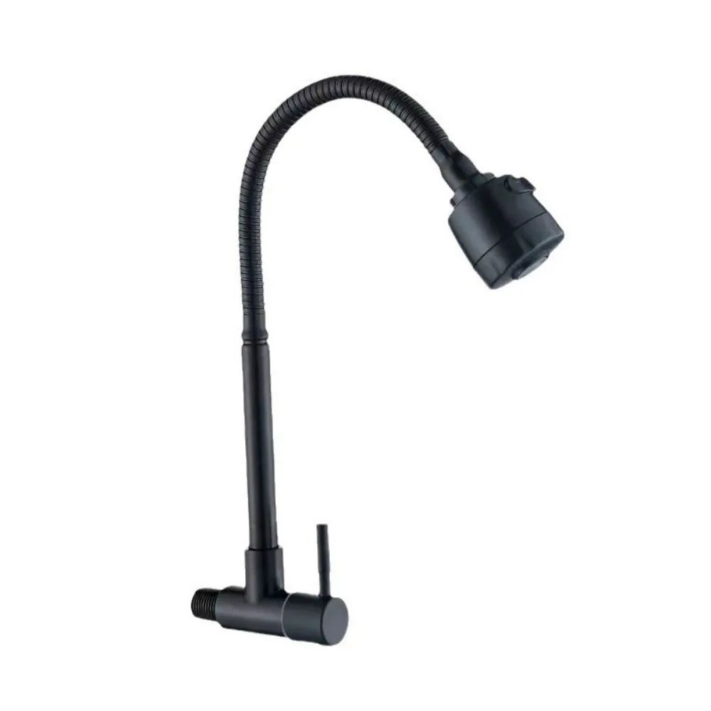 Robinet de cuisine en acier inoxydable, noir, Flexible, robinets d’eau froide simples, rotatif à poignée unique, buse de robinet d’eau, salle de bains et cuisine