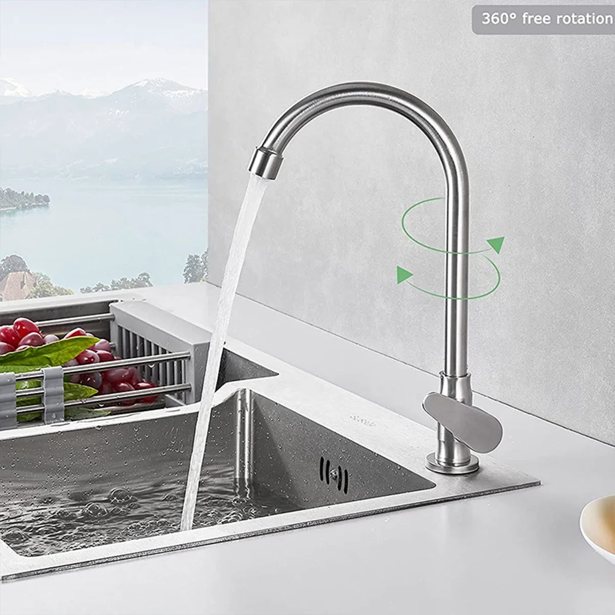 Robinet de cuisine en acier inoxydable, robinet d'eau froide à poignée unique