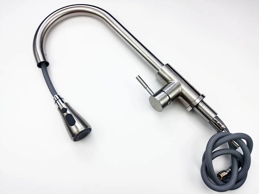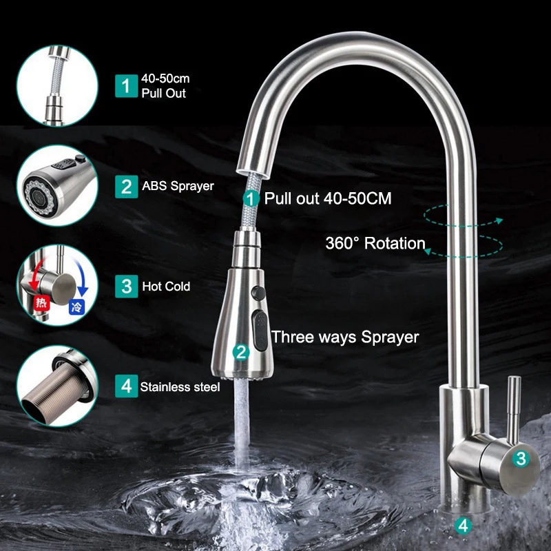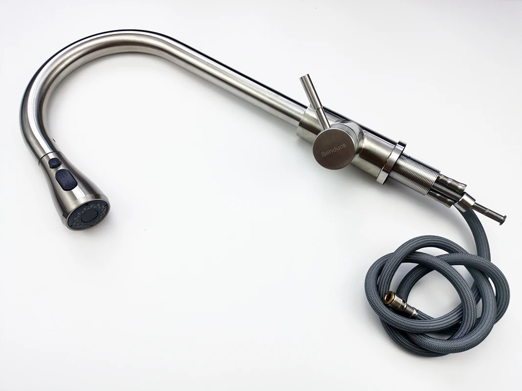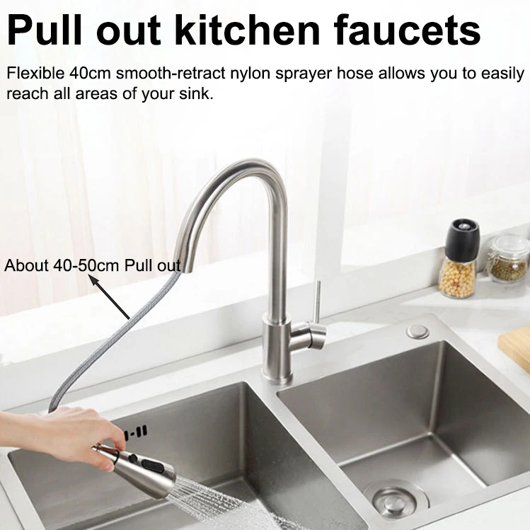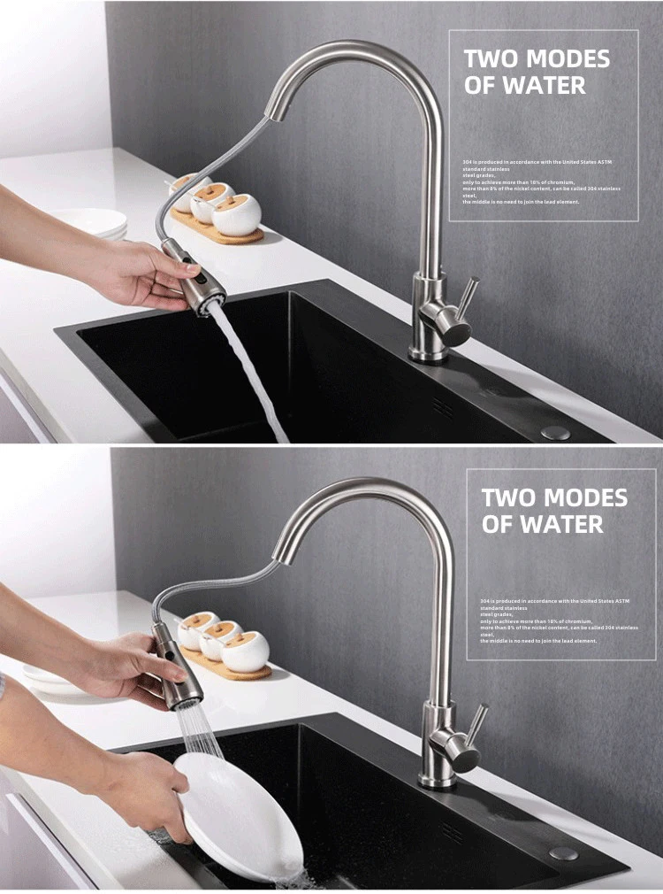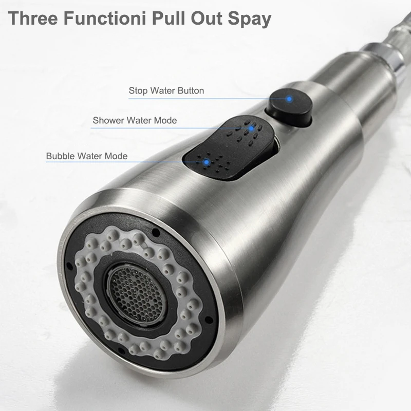 Pulvérisateur extractible: pulvérisateur pivotant à 360 degrés et bec avec 2 têtes de fonction, robinets d’évier de cuisine à levier unique. Deux modes de pulvérisation vous permettent de passer facilement d’un flux aéré sans éclaboussures à un puissant spray de pré-rinçage