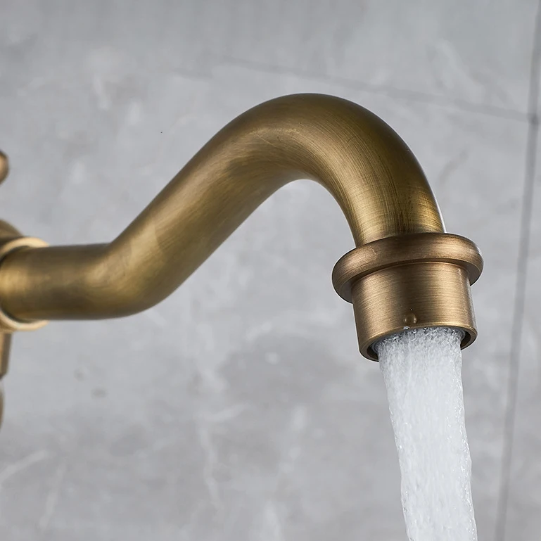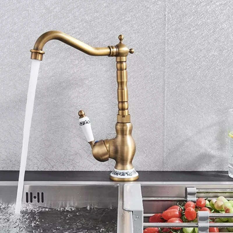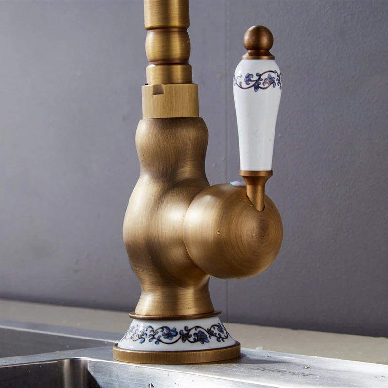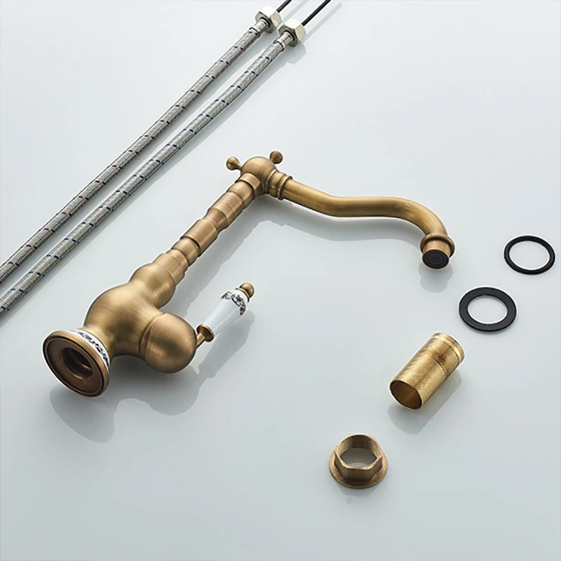 Robinet de lavabo rétro en laiton antique Robinet de cuisine à montage sur pont court/haut Mitigeur d’eau chaude froide Robinet d’évier de salle de bain