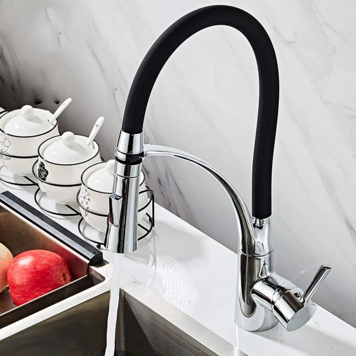 Soyez le premier à laisser votre avis sur “Robinet de cuisine extractible avec buse flexible en silicone, poignée unique, col de cygne extractible en laiton et design moderne à courbe élevée.”