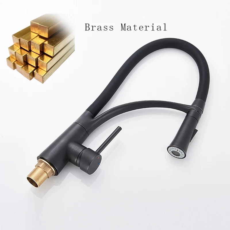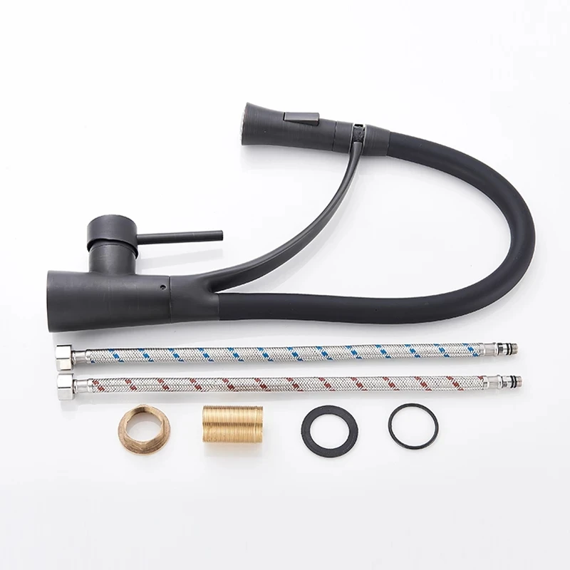 Robinet de cuisine à tirette chromé/nickel brossé/noir/doré avec tuyau noir monté sur le pont mitigeur d’eau chaude et froide robinet d’évier robinet de cuisine pivotant