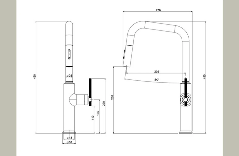 Optez pour un mitigeur à bec orientable. Hauteur : 30-40 cm. Bec pivotant 120° minimum.