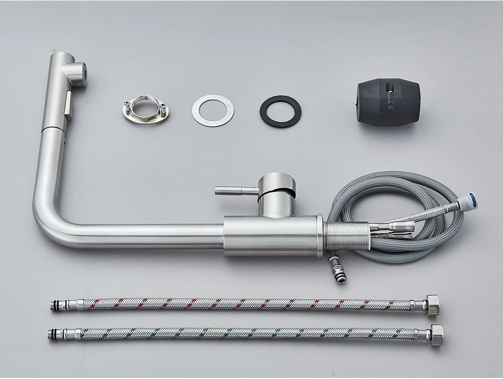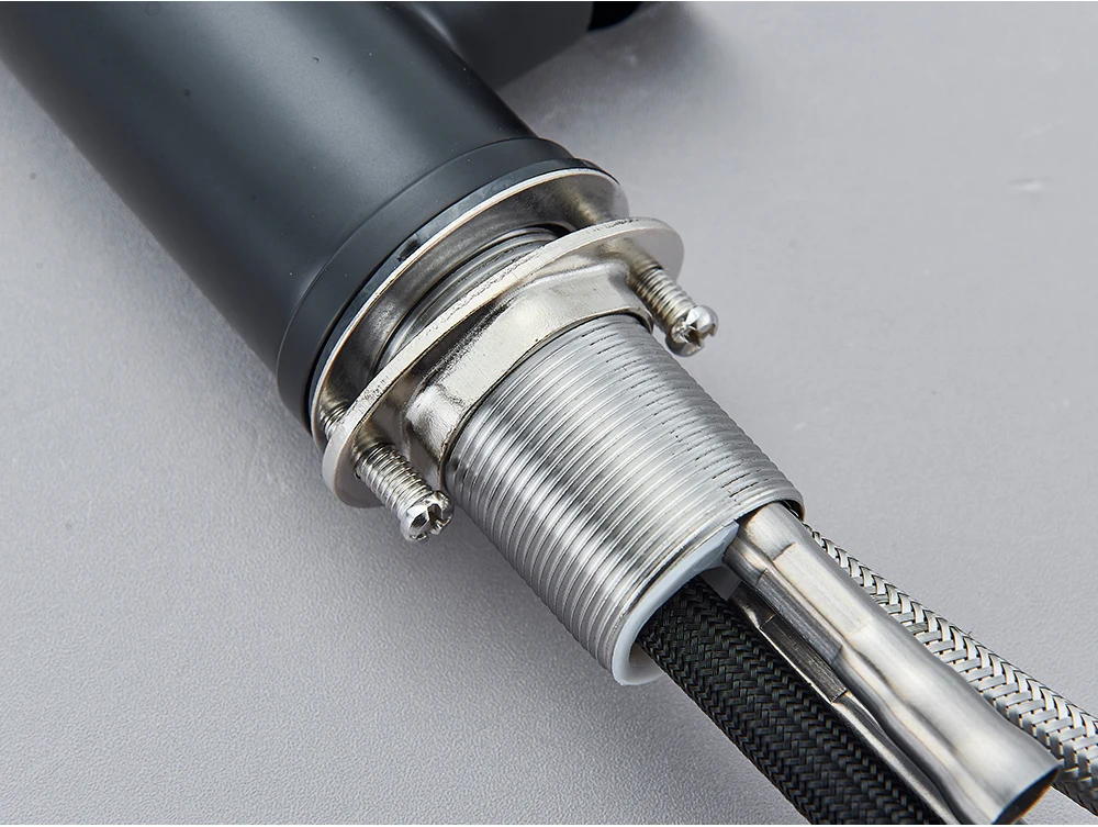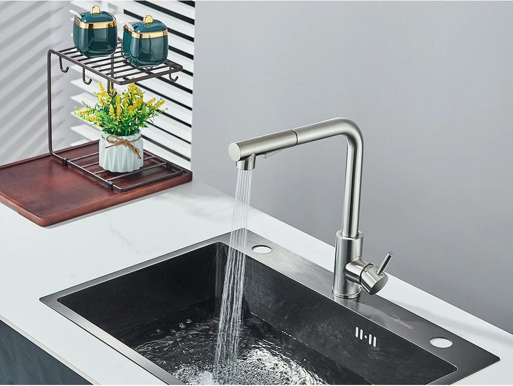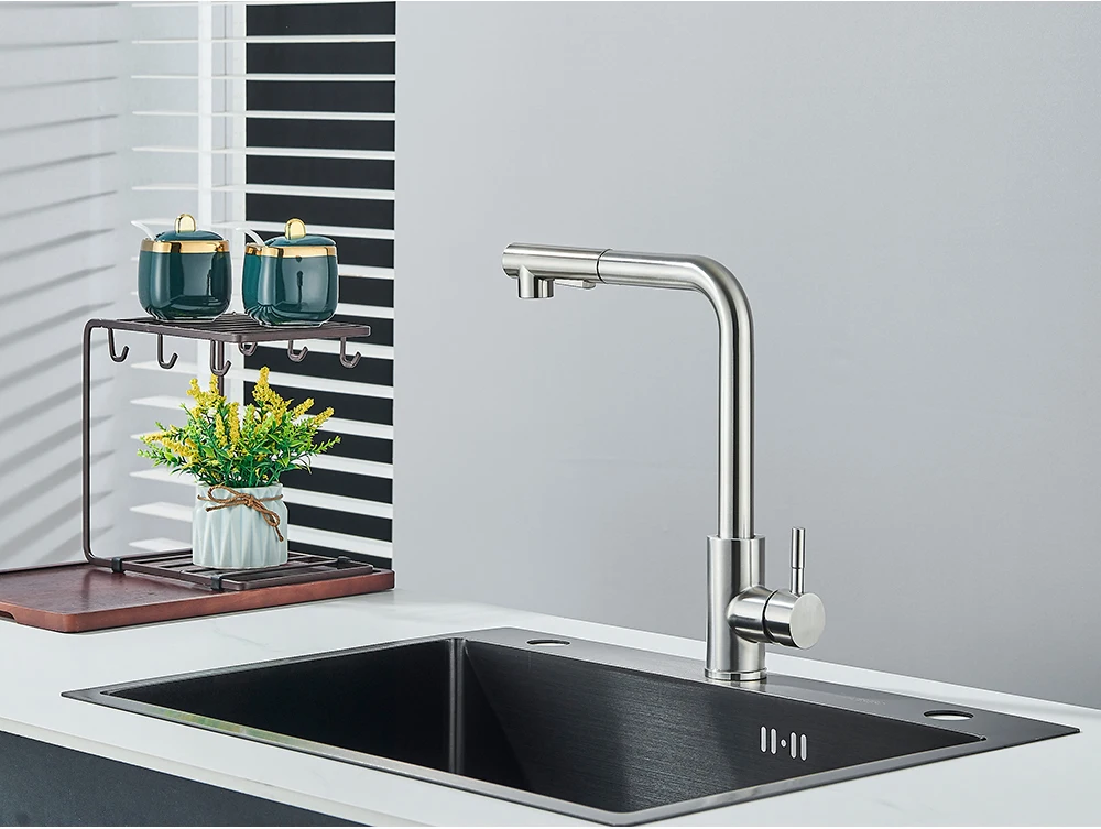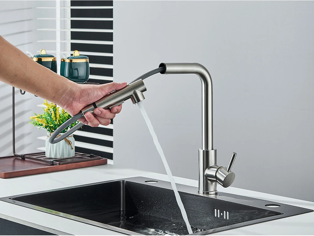 Robinet de cuisine extractible noir, robinet d’évier de cuisine monté sur le pont, mélangeurs de cuisine à poignée unique, bec rotatif, tête de pulvérisation à jet