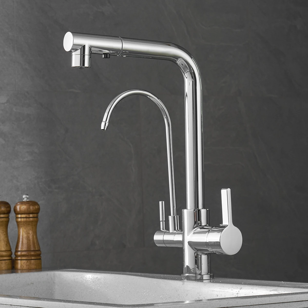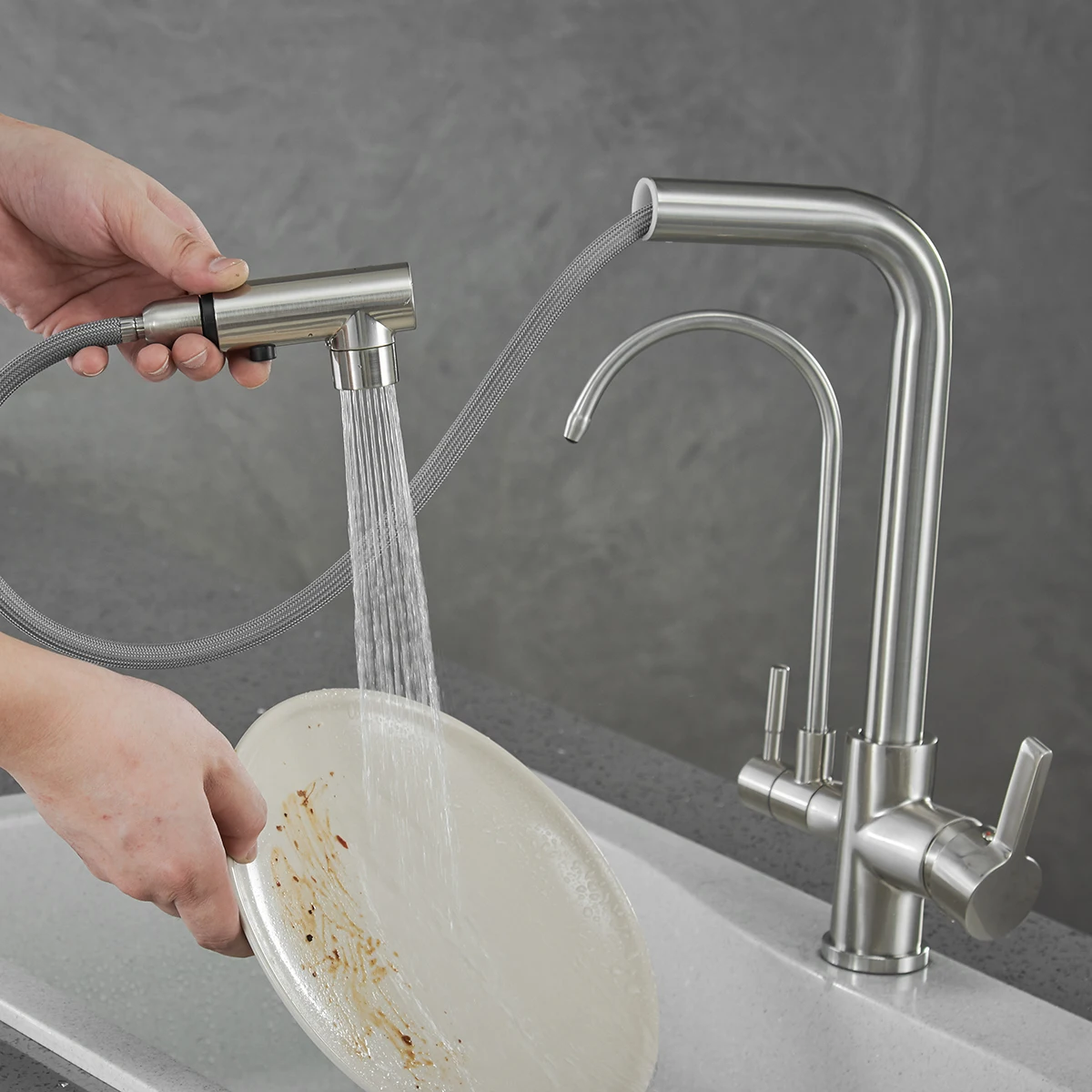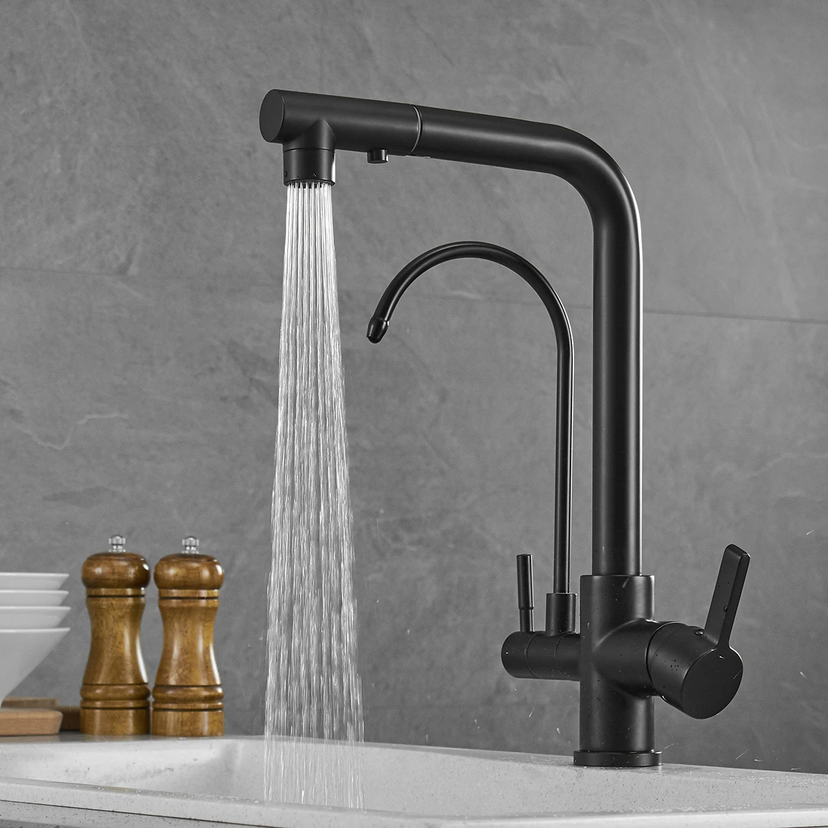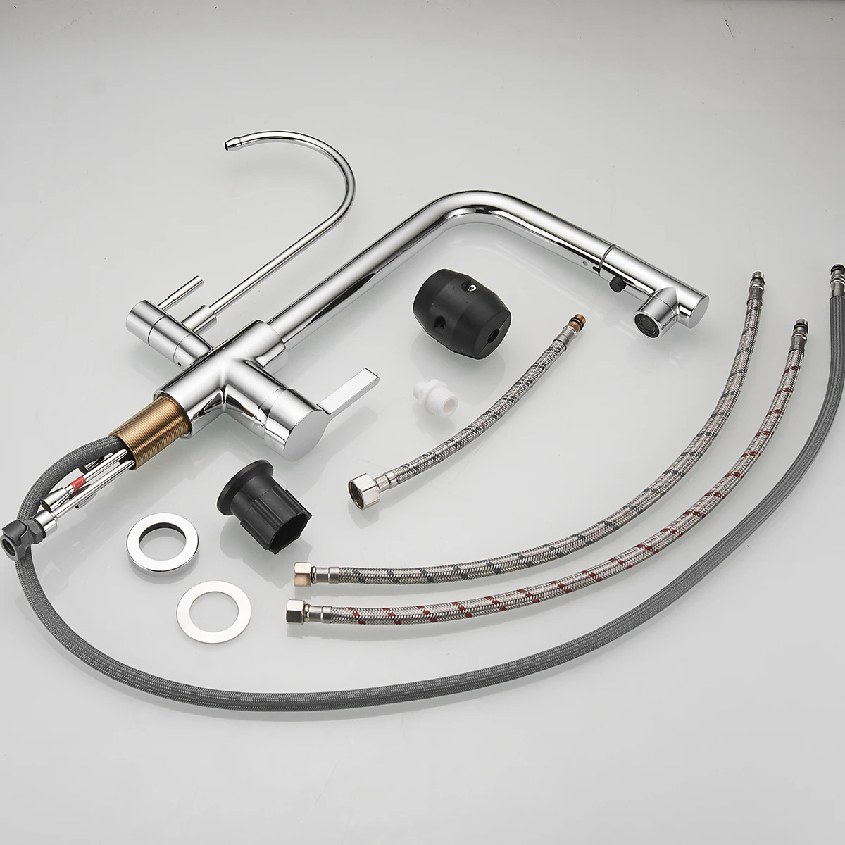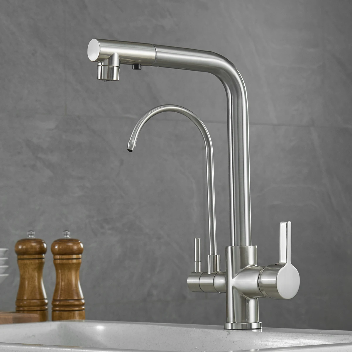 Robinet de cuisine moderne 3 en 1-Le design élégant et moderne duShenducsLe robinet de cuisine avec filtre à eau complète tout décor de cuisine, ajoutant à la fois style et fonctionnalité à votre espace. Le fonctionnement pratique à une seule poignée permet un contrôle facile de la température et du débit, tandis que le filtre intégré garde votre eau fraîche et pure.