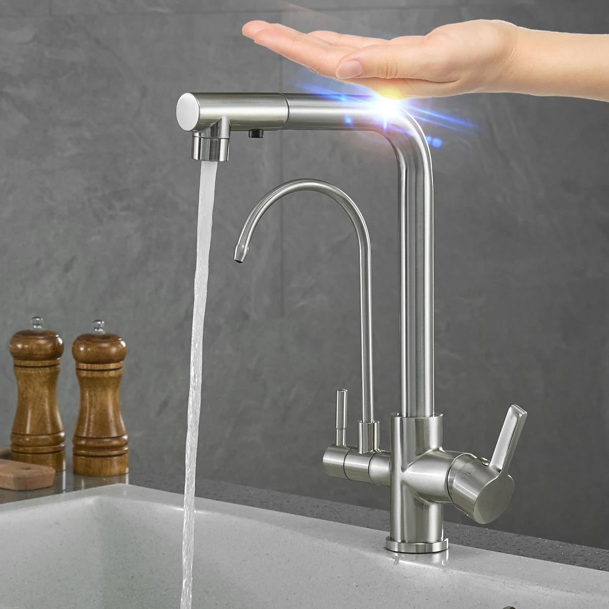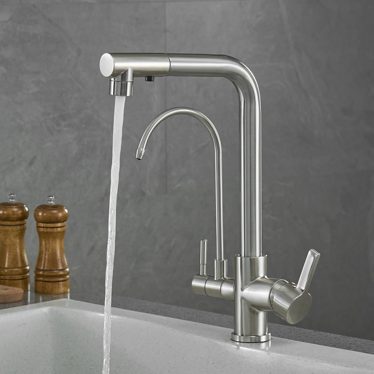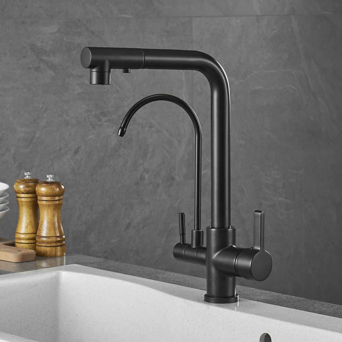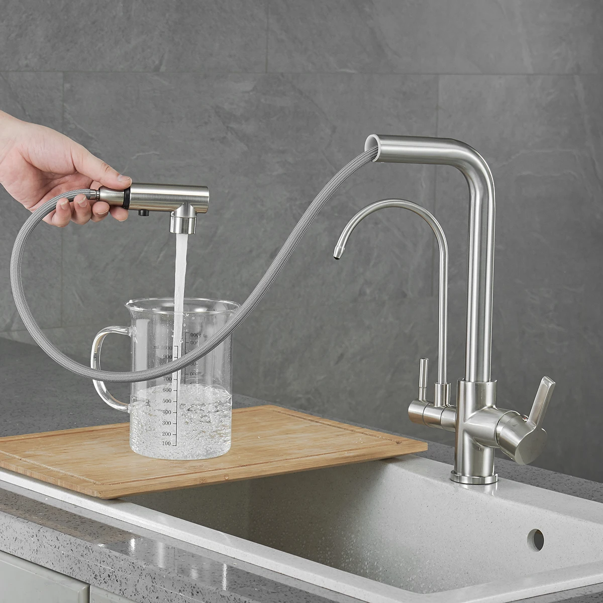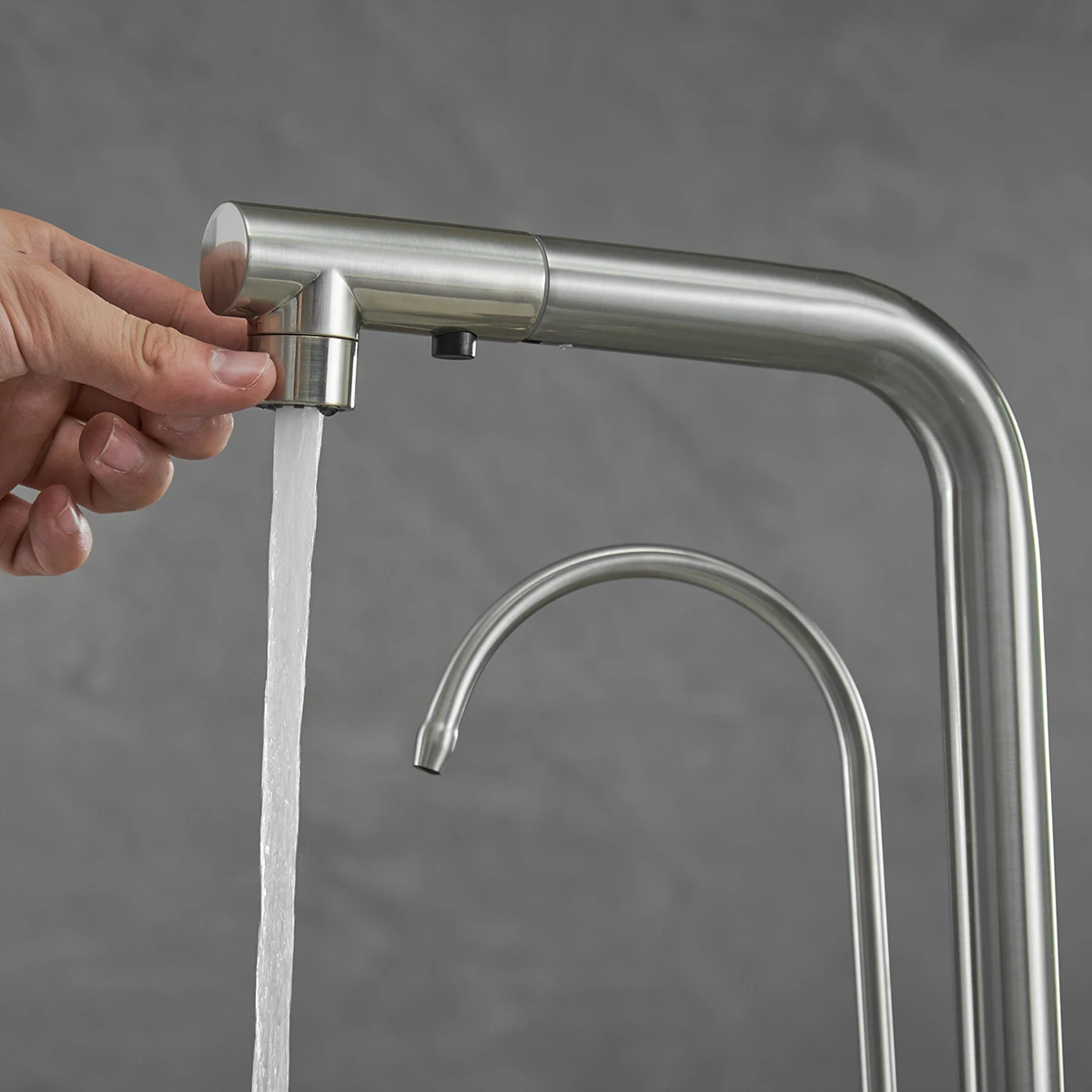 Robinet de cuisine moderne 3 en 1-Le design élégant et moderne duShenducsLe robinet de cuisine avec filtre à eau complète tout décor de cuisine, ajoutant à la fois style et fonctionnalité à votre espace. Le fonctionnement pratique à une seule poignée permet un contrôle facile de la température et du débit, tandis que le filtre intégré garde votre eau fraîche et pure.