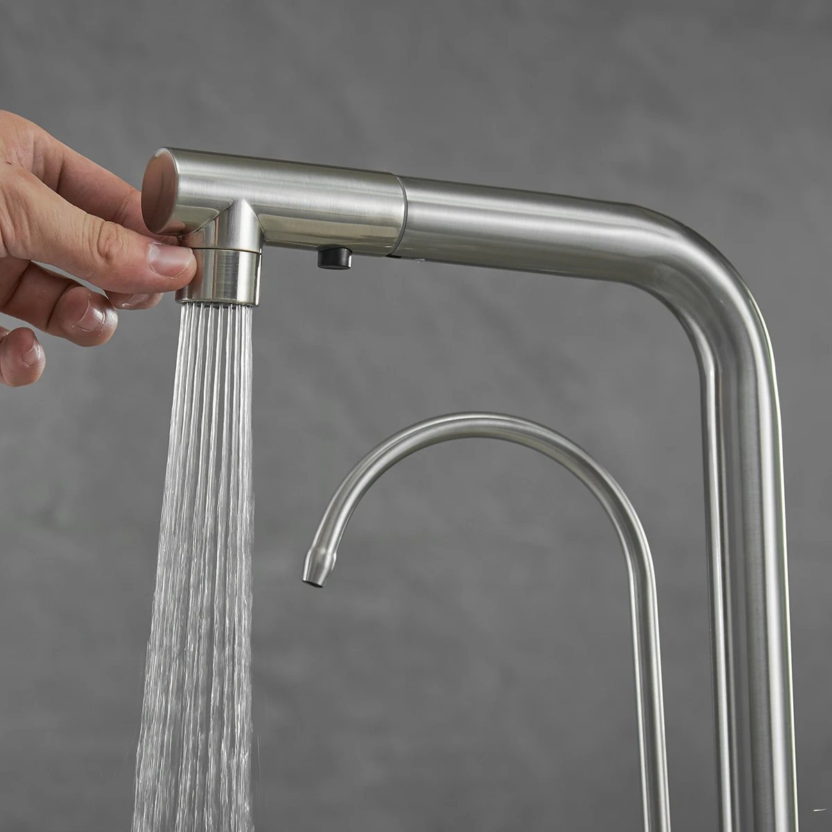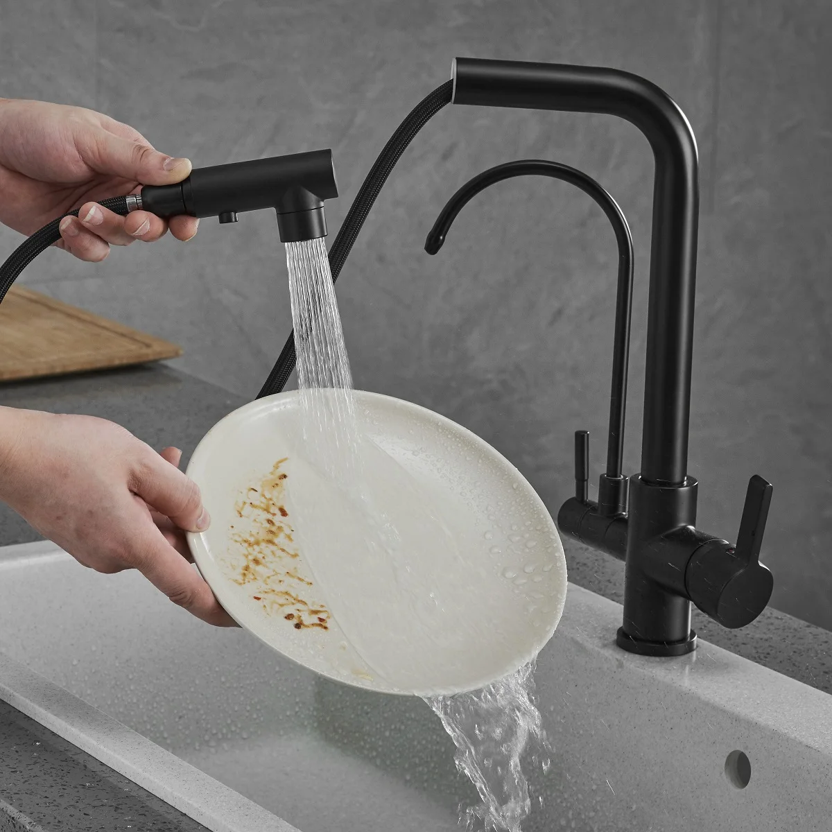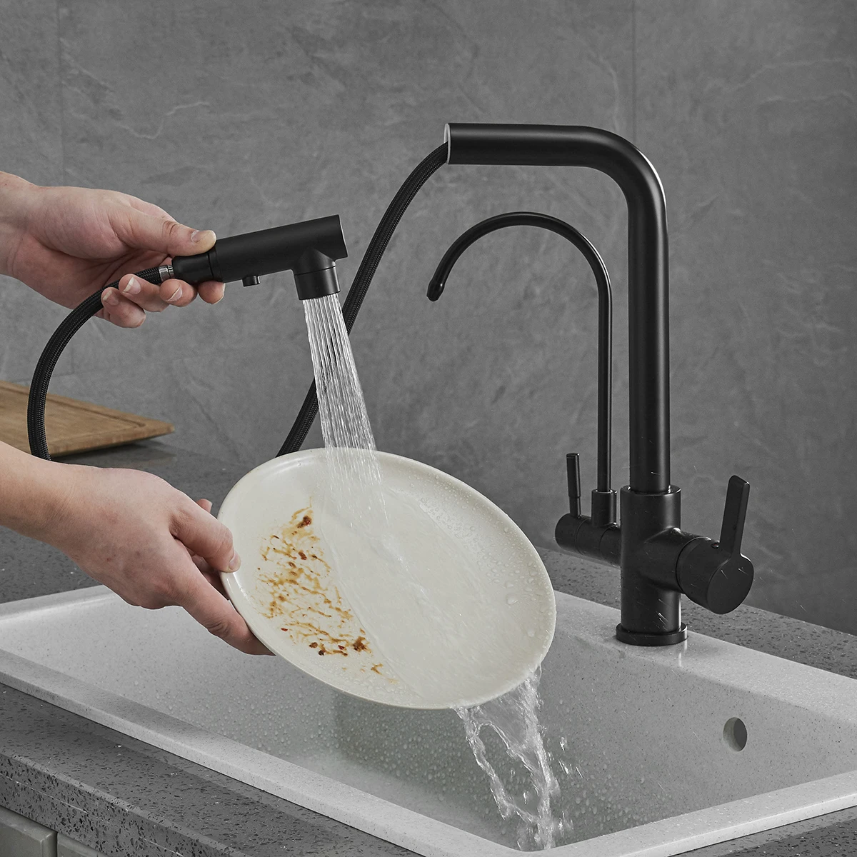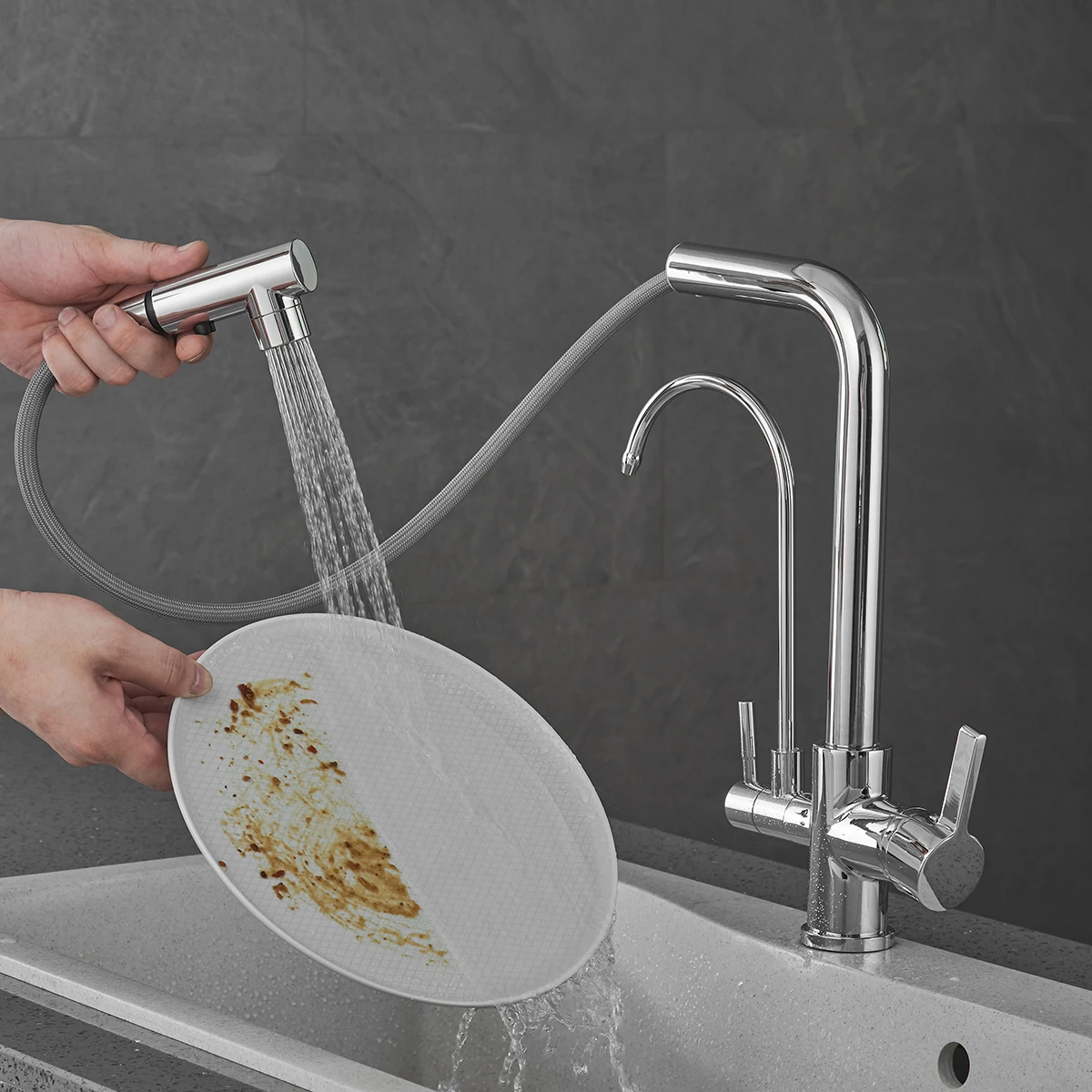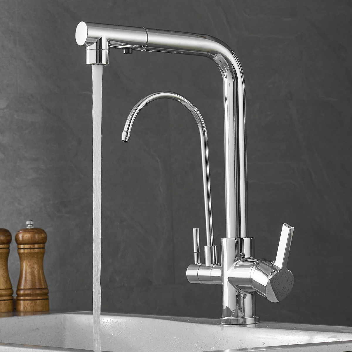 Robinet de cuisine moderne 3 en 1-Le design élégant et moderne duShenducsLe robinet de cuisine avec filtre à eau complète tout décor de cuisine, ajoutant à la fois style et fonctionnalité à votre espace. Le fonctionnement pratique à une seule poignée permet un contrôle facile de la température et du débit, tandis que le filtre intégré garde votre eau fraîche et pure.