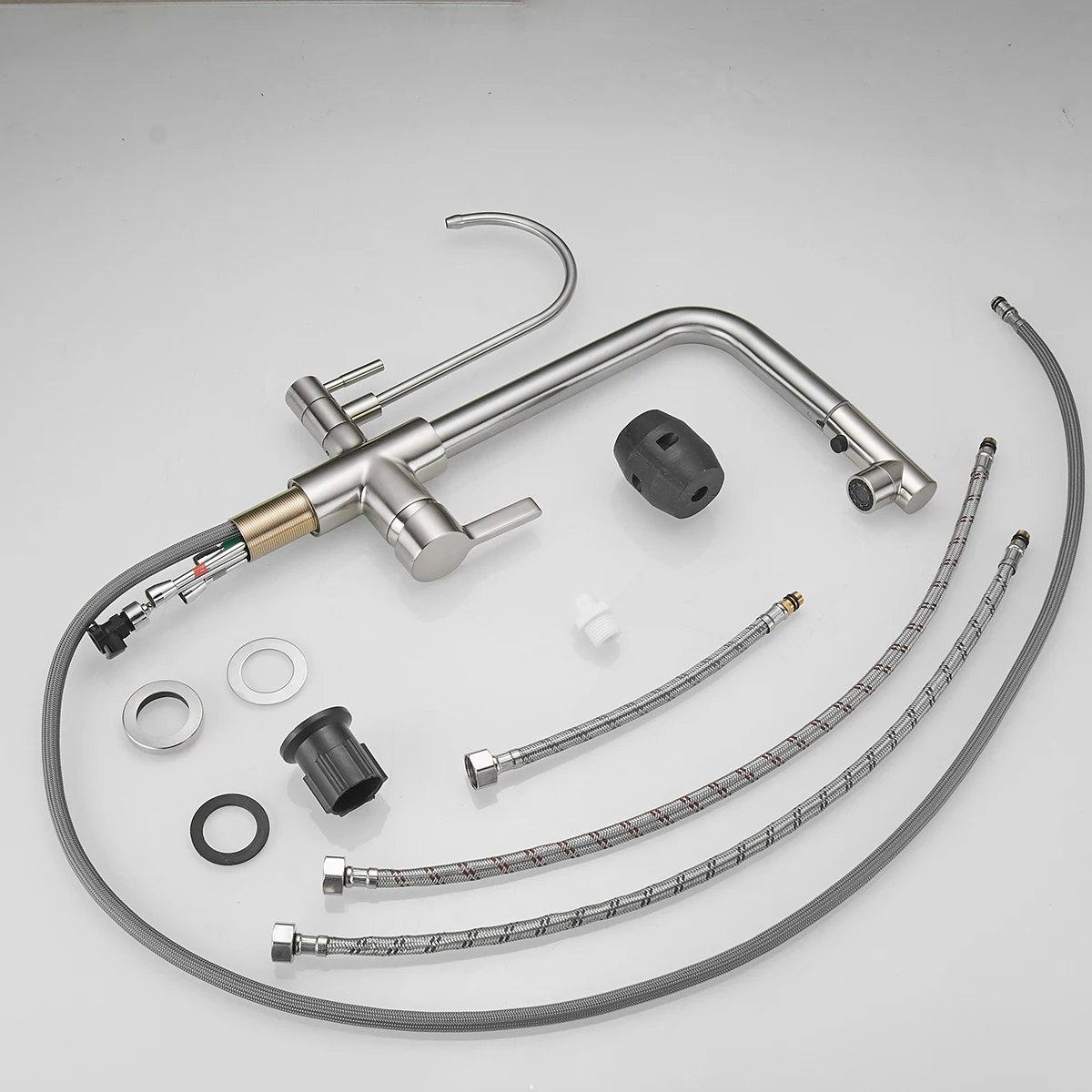 Robinet de cuisine moderne 3 en 1-Le design élégant et moderne du robinet de cuisine Shenducs avec filtre à eau complète tout décor de cuisine, ajoutant à la fois style et fonctionnalité à votre espace. Le fonctionnement pratique à une seule poignée permet un contrôle facile de la température et du débit, tandis que le filtre intégré garde votre eau fraîche et pure.