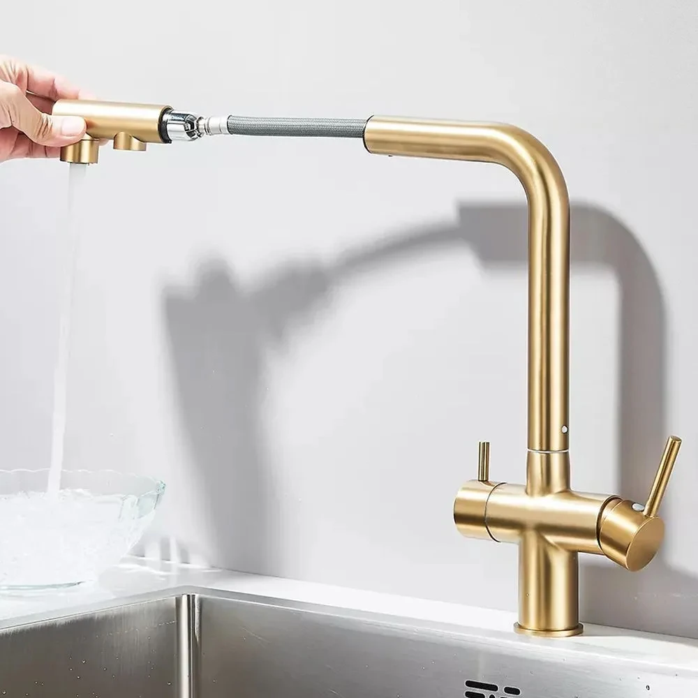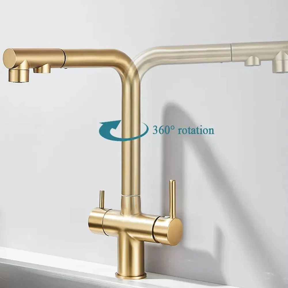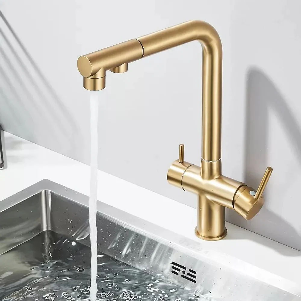 Robinet de cuisine filtré extractible à 2 voies, purificateur en laiton noir, Rotation à 360 degrés, double pulvérisateur, robinet d’eau potable, robinet mitigeur d’évier