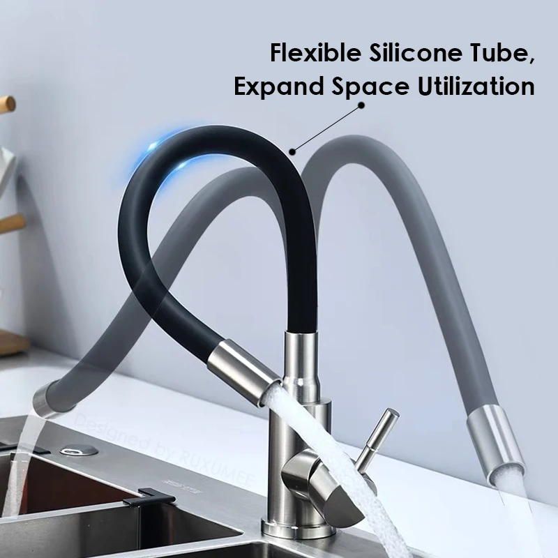 Bec pivotant à 360 degrés adapté aux éviers à cuvette simple et multiple.