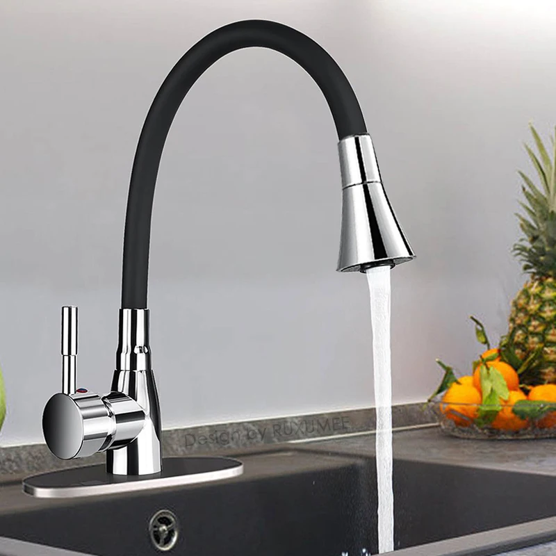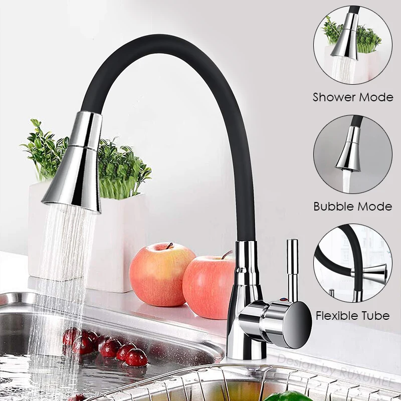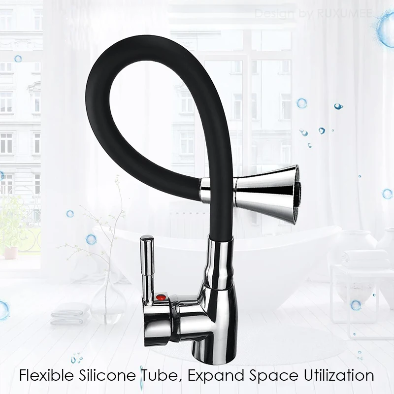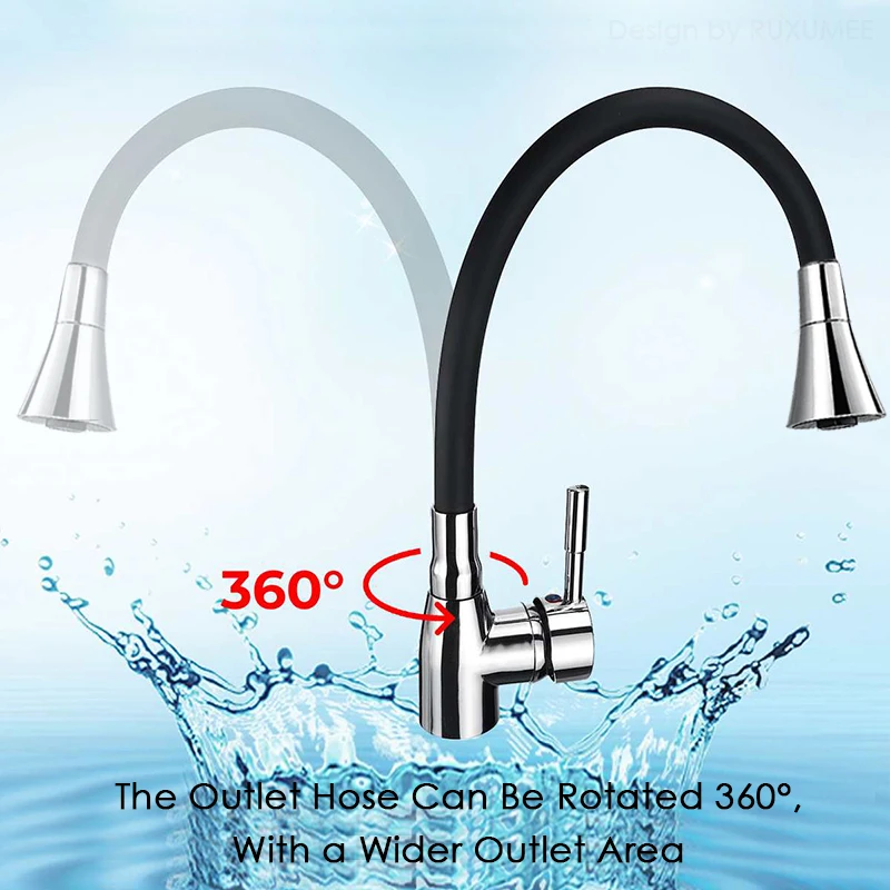 Robinet de cuisine Flexible rotatif à 360 degrés, mitigeur d’eau froide et chaude en Chrome poli à poignée unique, monté sur le pont