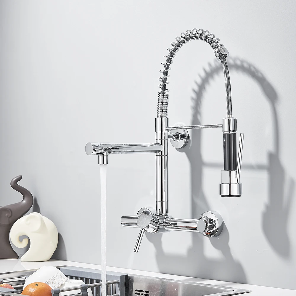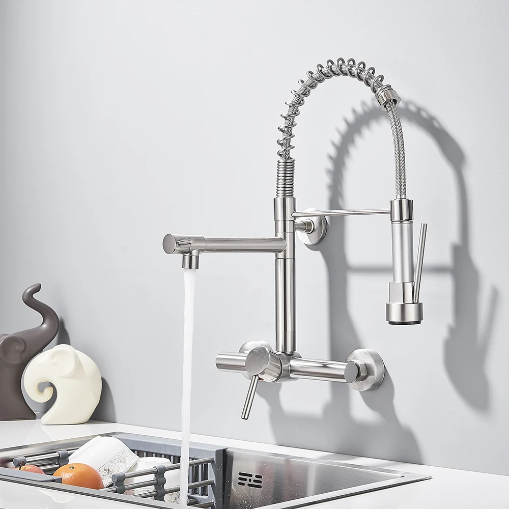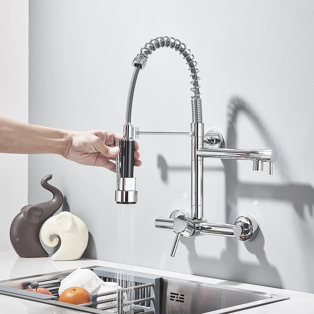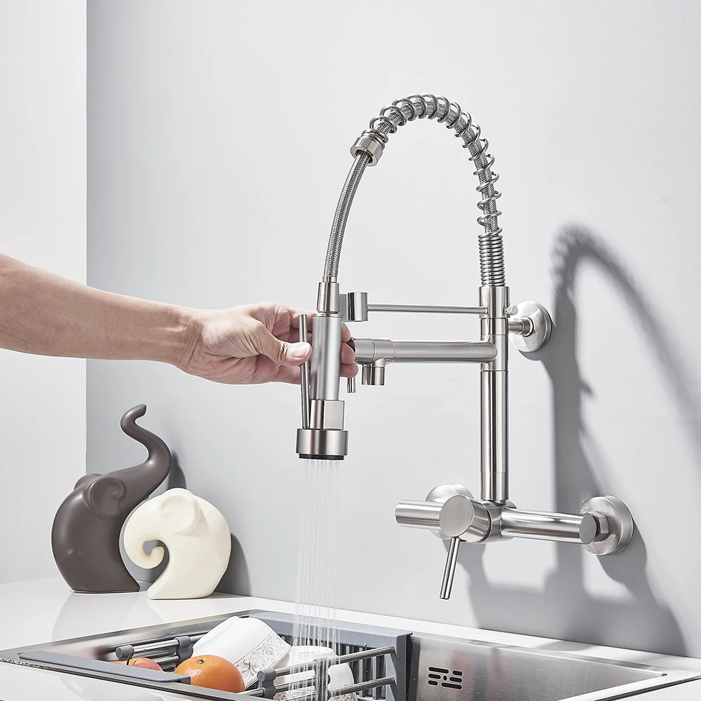 Robinet de cuisine gastronomique mural, pulvérisateur à 2 Modes, poignée rotative Daul, mélangeur d’eau froide et chaude, grue d’évier de cuisine