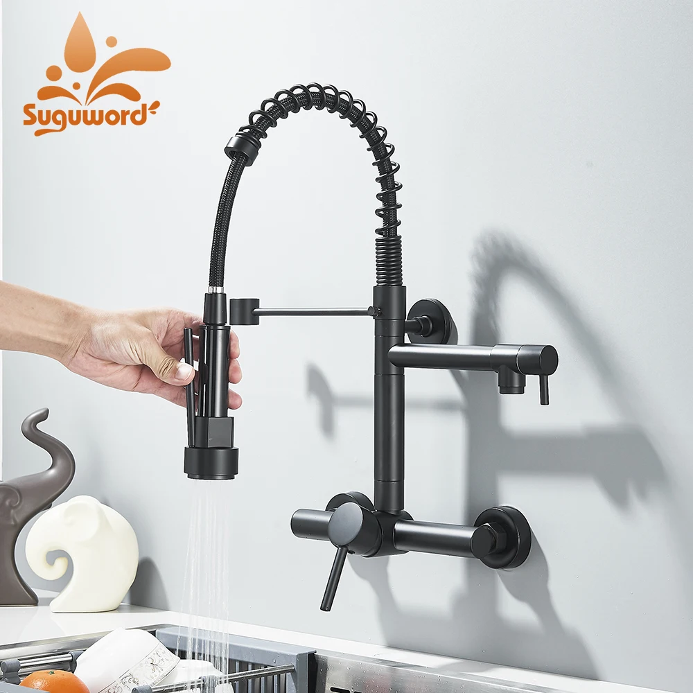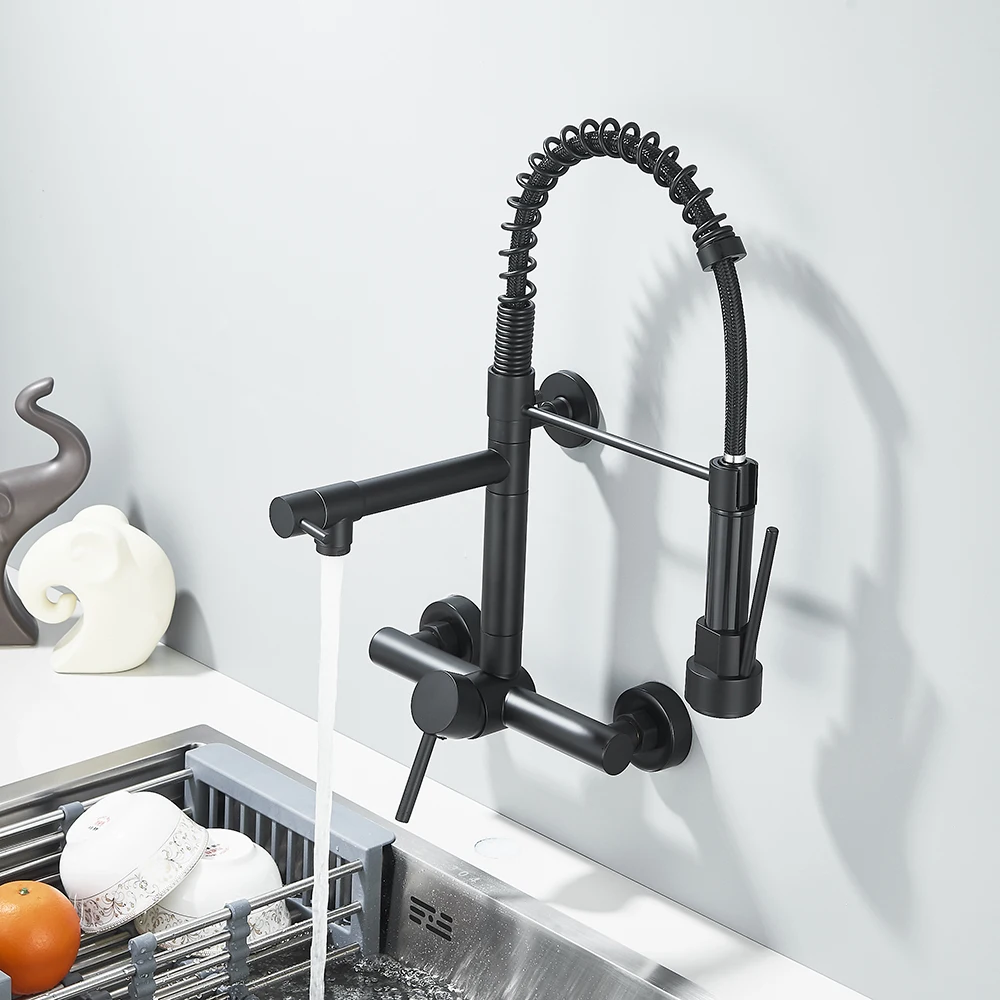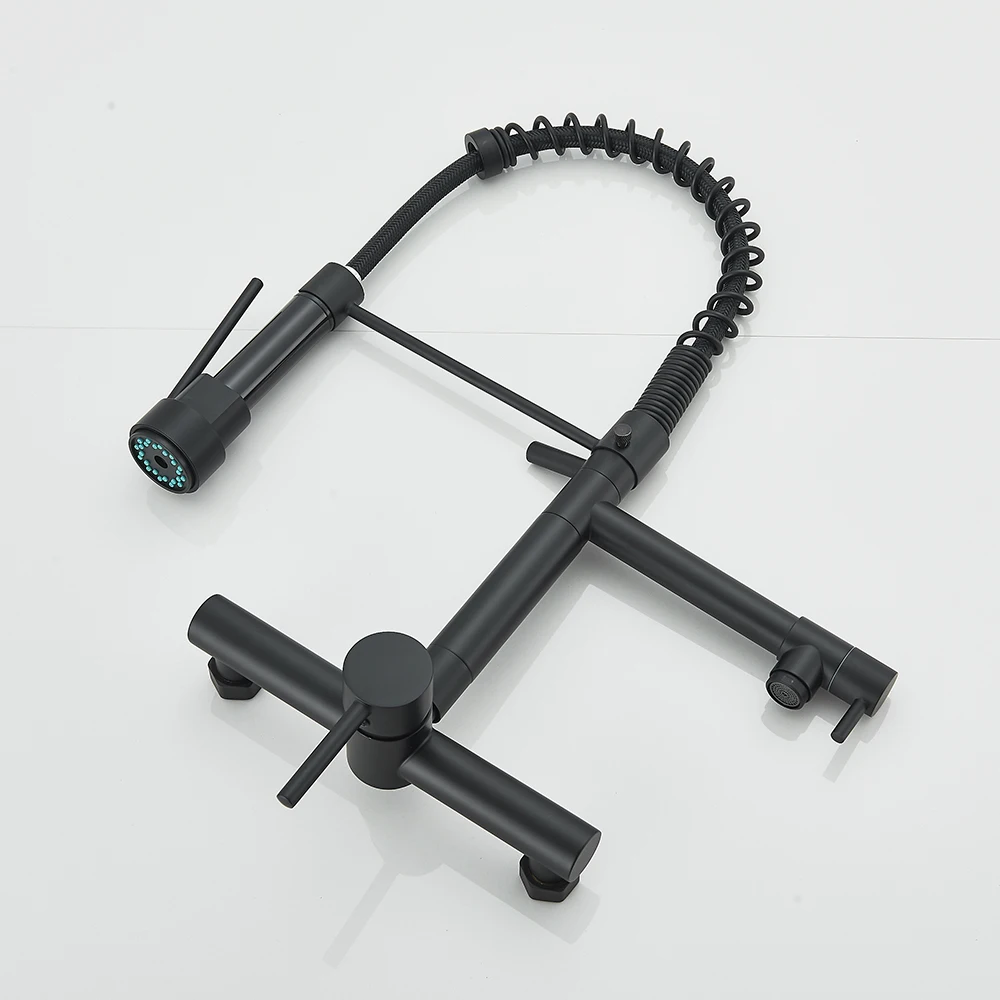 Robinet de cuisine Gourmet mural, pulvérisateur à 2 Modes, poignée rotative Daul, mélangeur d’eau froide et chaude, grue d’évier de cuisine