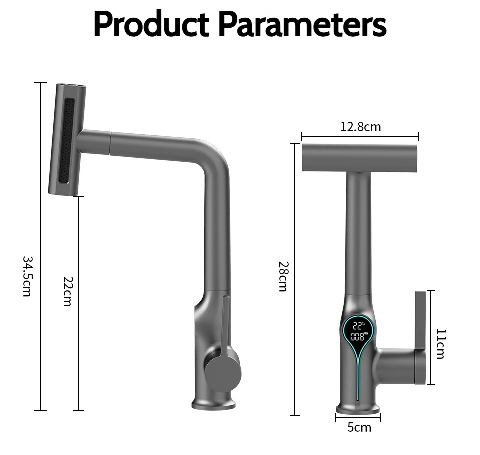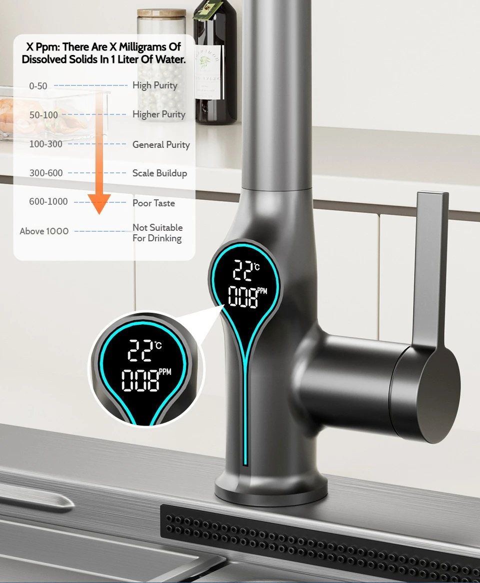 ✿ Caractéristiques :Détection de la qualité/température de l’eau Tds, hauteur réglable, conception extractible