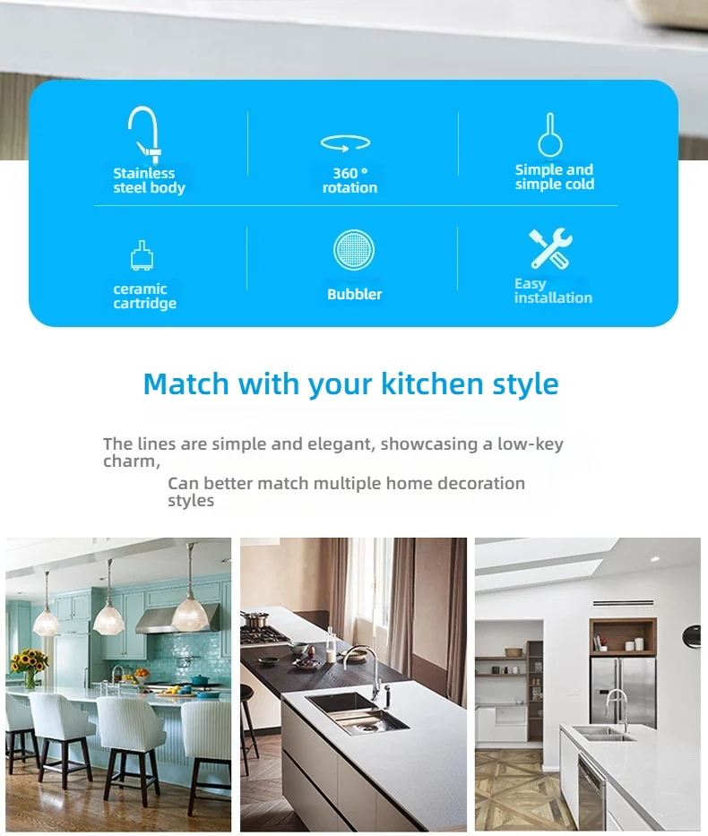 "Je suis vraiment ravi de mon achat de ce robinet de cuisine en acier inoxydable. Il est très bien conçu et s'intègre parfaitement dans ma cuisine. L'installation a été simple et rapide, et depuis, il fonctionne de manière impeccable. La qualité de fabrication est exceptionnelle, le design est élégant et sobre. Le seul petit bémol serait le fait qu'il soit un peu plus haut que prévu, mais cela ne gêne pas son utilisation au quotidien. Dans l'ensemble, je suis extrêmement satisfait de ce produit et le recommande sans hésiter."