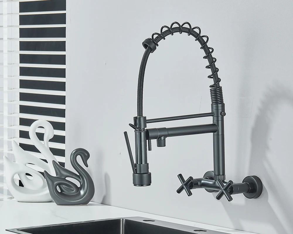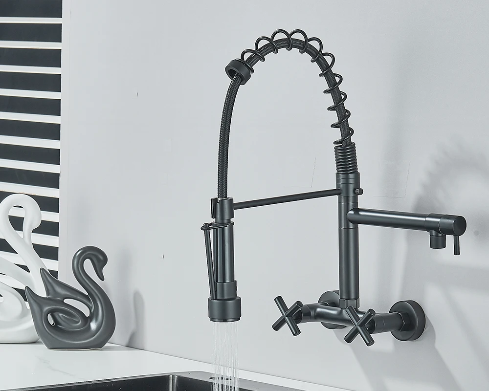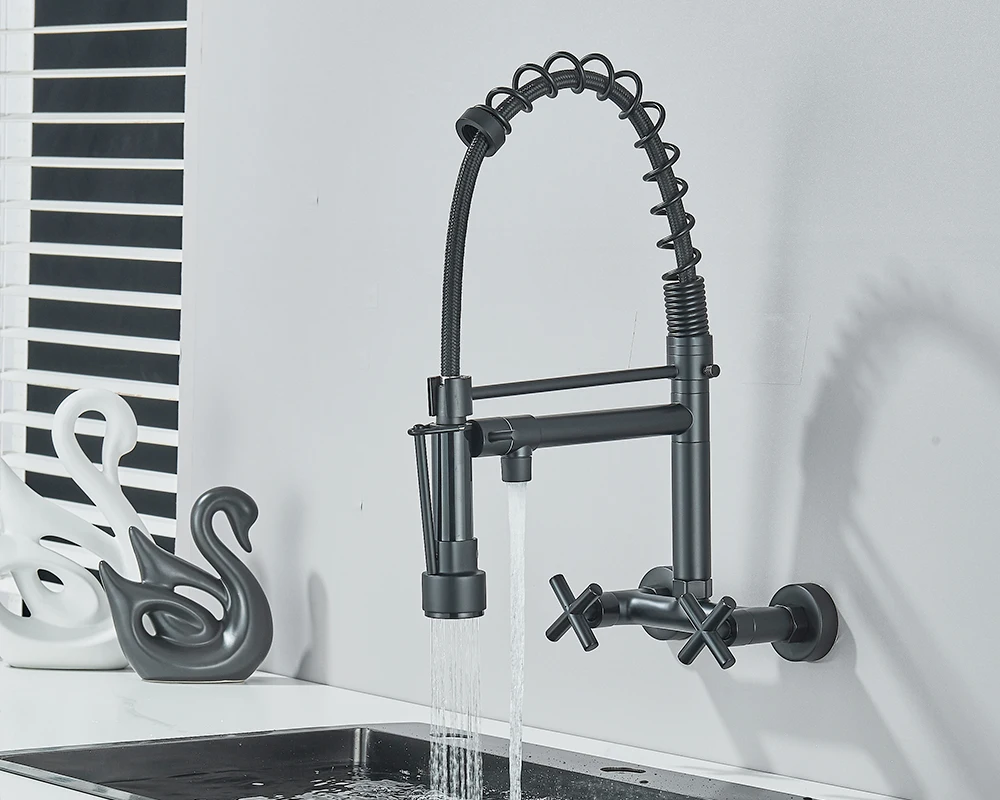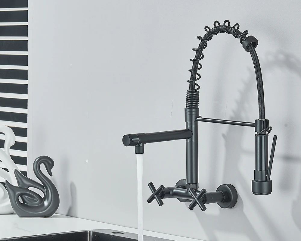 • Installation: Wall Mounted Black Kitchen Faucet With Rotatable Swivel Spout