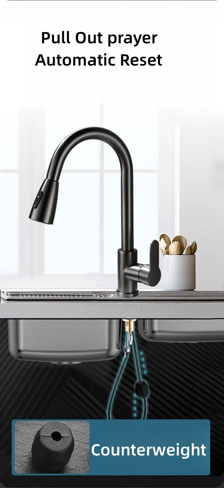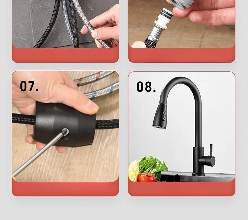 Soyez le premier à laisser votre avis sur “Robinet de cuisine noir mat, bec extractible à trou unique, mélangeur rotatif à 360 degrés, tête de pulvérisation, robinet mitigeur chaud et froid”