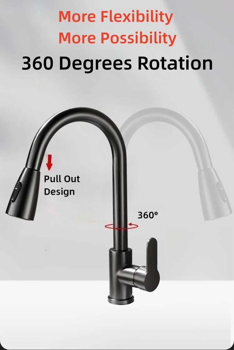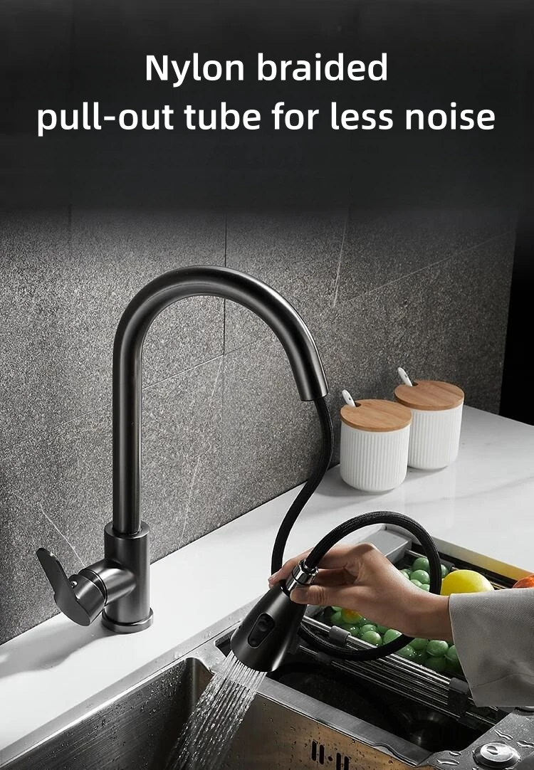 Robinet de cuisine noir mat, bec extractible à trou unique, mélangeur rotatif à 360 degrés, tête de pulvérisation, robinet mitigeur chaud et froid