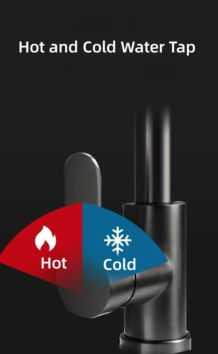 Robinet d'Eau Froide Simple en Acier Inoxydable 304, Noir Argent, Document Monté sur le Pont, Allongement et Levage du Bassin, Robinet d'Évier