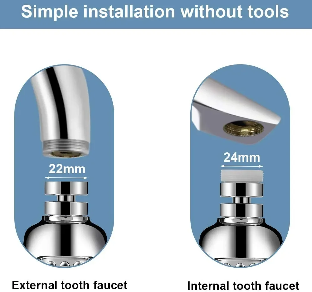 Adoptez l’interface standard, adaptée à la plupart des robinets de cuisine et de salle de bains domestiques.Les aucune outils sont nécessaires pour l’installation et cela peuvent être complètes par torsion manuelle, remplaçant facilement l’ancienne buse de robinet.